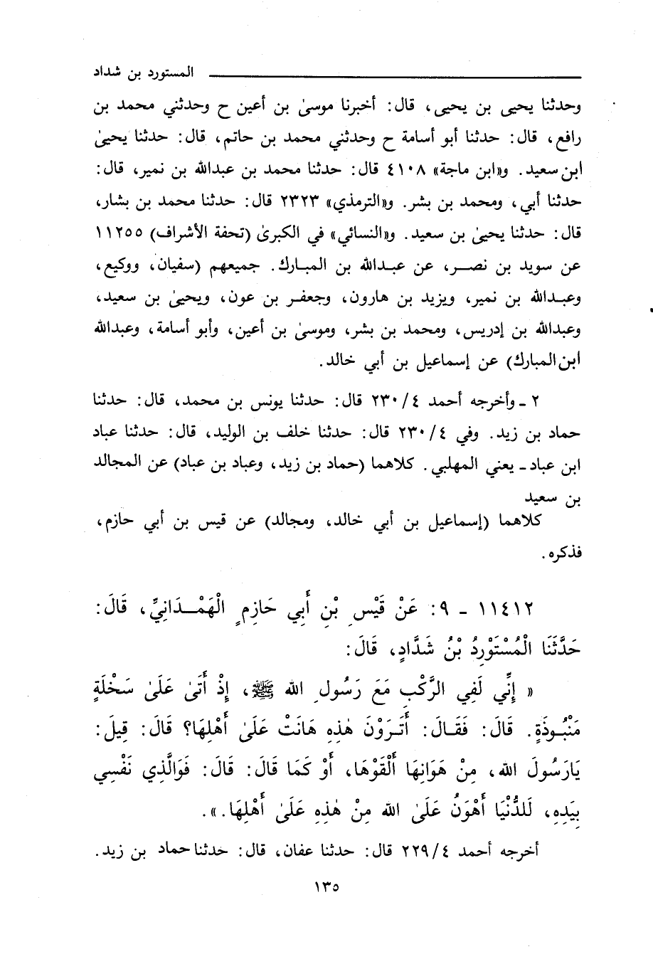 وحدَّثنا يَحيى بن يَحيى، أَخْبَرنا مُوسَى بن أَعْيَن (ح) وحدَّثني مُحَمد بن رافع، حدَّثنا أبو أُسَامة، كلهم عن إِسْمَاعِيل بن أَبي خالد (ح) وحدَّثني مُحَمد بن حاتم، حدَّثنا يَحيى بن سَعِيد، حدَّثنا إِسْمَاعِيل. و"ابن ماجة"٤١٠٨ قال: حدَّثنا مُحَمد بن عَبْد الله بن نُمَيْر، حدَّثنا أَبي، ومُحَمد بن بِشْر، قالا: حدَّثنا إِسْمَاعِيل بن أَبي خالد. و"التِّرمِذي"٢٣٢٣ قال: حدَّثنا مُحَمد بن بَشَّار، حدَّثنا يَحيى بن سَعِيد، حدَّثنا إِسْمَاعِيل بن أَبي خالد. و"النَّسائي" في "الكبرى") تحفة