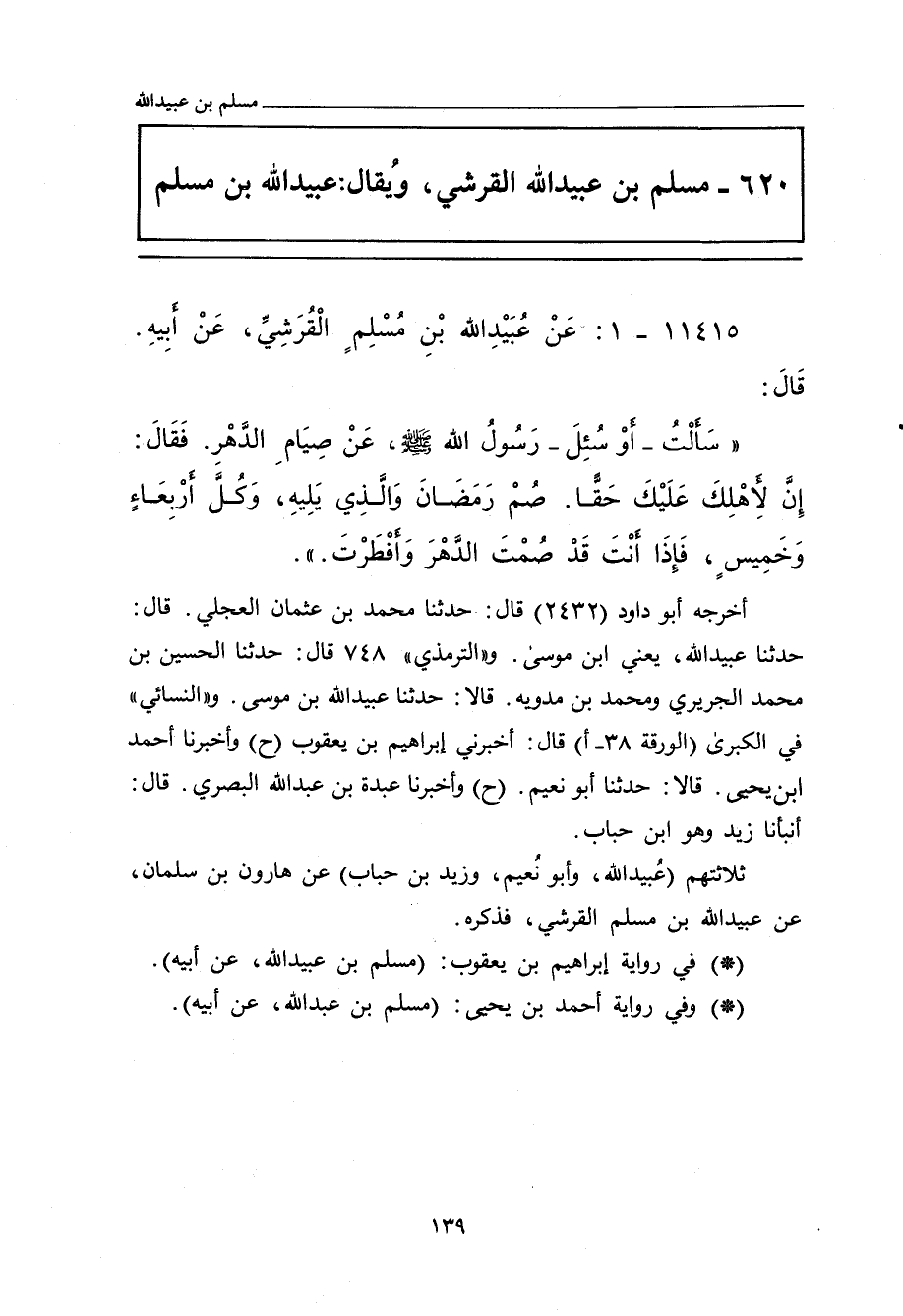 ٦٢٠ - مُسْلم بن عُبَيْد الله القُرَشِيُّ، ويُقال: عُبَيْد الله بن مُسْلم