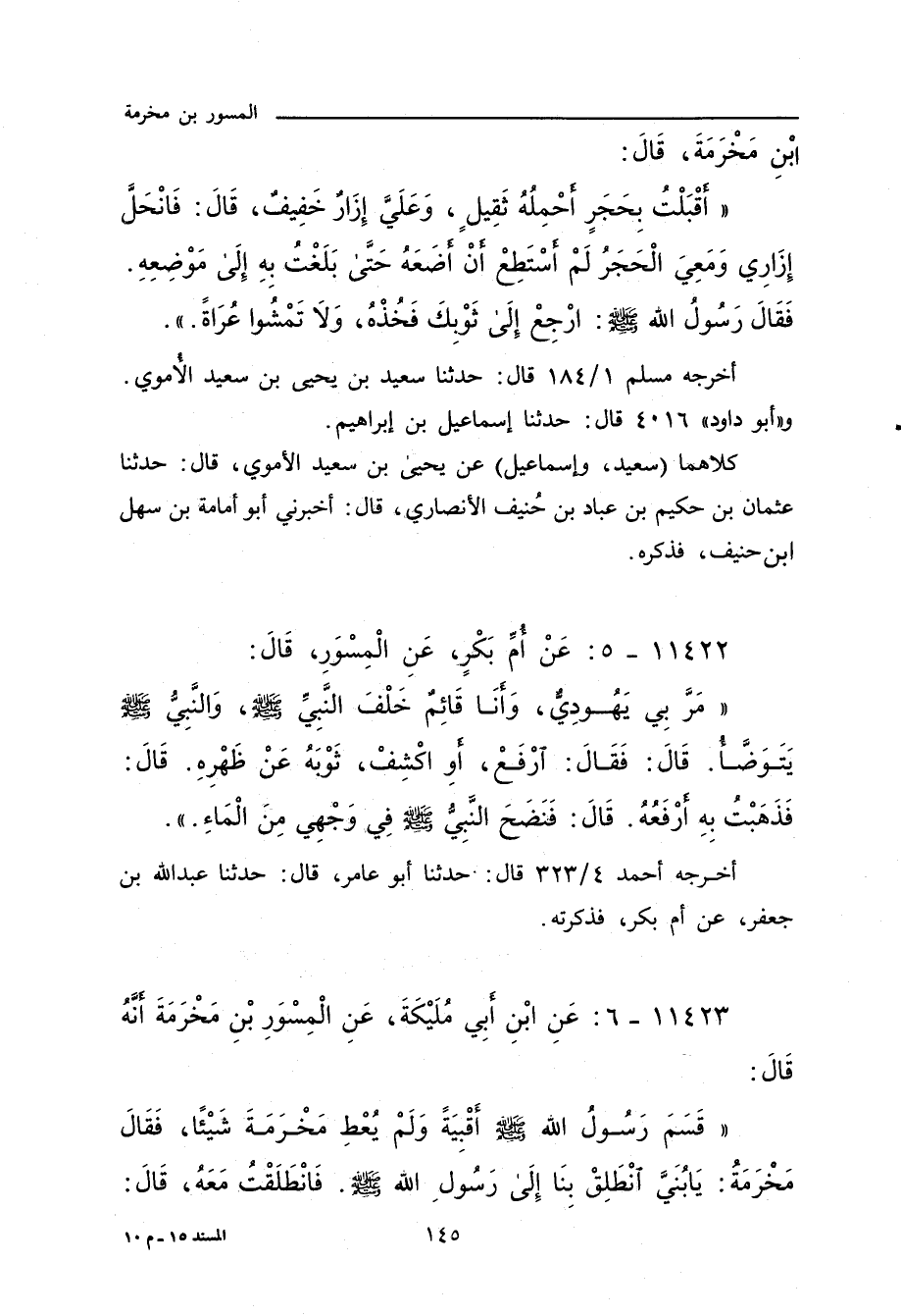 ١١٤٢٢ - عَنْ أُمِّ بَكْرٍ، عَنِ الْمِسْوَرِ، قَالَ: