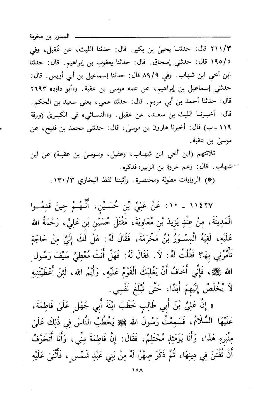 ٣/ ١٩٣ (٢٥٣٩ و ٢٥٤٠) و ٣/ ٢٠٥ (٢٥٨٣ و ٢٥٨٤) قال: حدَّثنا سَعِيد بن أَبي مَرْيَم، حدَّثنا اللَّيْث، قال: حدَّثني عُقَيْل. وفي ٣/ ٢١١ (٢٦٠٧ و ٢٦٠٨) قال: حدَّثنا يَحيى بن بُكَيْر، حدَّثنا اللَّيْث، عن عُقَيْل. وفي ٥/ ١٩٥ (٤٣١٨ و ٤٣١٩ م) قال: حدَّثني إِسْحَاق، حدَّثنا يَعْقُوب بن إبراهيم، حدَّثنا ابن أخي ابن شِهَاب. وفي ٩/ ٨٩ (٧١٧٦ و ٧١٧٧) قال: حدَّثنا إِسْمَاعِيل بن أَبي أُوَيْس، حدَّثني إِسْمَاعِيل بن إبراهيم، عن عَمِّه مُوسَى بن عُقْبَة. و"أبو داود"٢٦٩٣ قال: حدَّثنا أحمد بن أَبي مَرْيَم، حدَّثنا عَمِّي، يَعْنِي سَعِيد بن الحَكَم، قال: أَخْبَرنا اللَّيْث بن سَعْد، عن عُقَيْل. و"النَّسائي" في "الكبرى"٨٨٢٥ قال: أَخْبَرنا هارون بن مُوسَى، قال: حدَّثني مُحَمد بن فُلَيْح، عن مُوسَى.