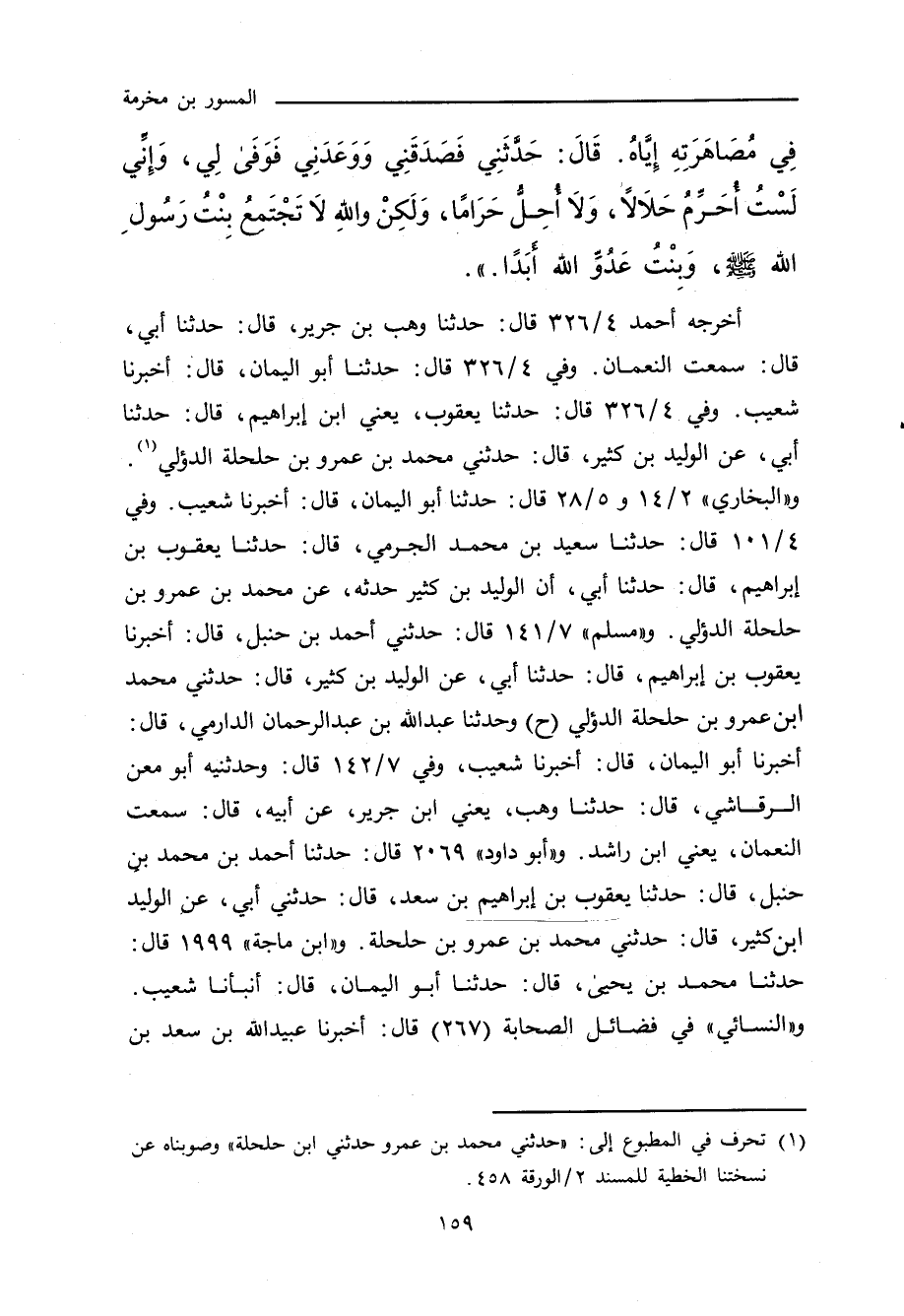أخرجه أحمد ٤/ ٣٢٦ (١٩١١٨) قال: حدَّثنا وَهْب بن جَرِير، حدَّثنا أَبي، قال: سَمِعْتُ النُّعْمَان يُحدِّث. وفي (١٩١١٩) قال: حدَّثنا أبو اليَمَان، أنبأنا شُعَيْب. وفي (١٩١٢٠) قال: حدَّثنا يَعْقُوب، يَعْنِي ابن إبراهيم، حدَّثنا أَبي، عن الوَلِيد بن كَثِير، حدَّثني مُحَمد بن عَمْرو بن حَلْحَلَة الدُّؤَلِي. و"البُخَارِي" ٢/ ١٤ (٩٢٦) و ٥/ ٢٨ (٣٧٢٩) قال: حدَّثنا أبو اليَمَان، قال: أَخْبَرنا شُعَيْب، قال البُخَارِي عَقِب (٩٢٦): تَابَعَهُ الزُّبَيْدي. وقال عَقِب (٣٧٢٩): وزاد مُحَمد بن عَمْرو بن حَلْحَلَة. وفي ٤/ ١٠١ (٣١١٠) قال: حدَّثنا سَعِيد بن مُحَمد الجَرْمِي، حدَّثنا يَعْقُوب بن إبراهيم، حدَّثنا أَبي، أن الوَلِيد بن كَثِير حدَّثه، عن مُحَمد بن عَمْرو بن حَلْحَلَة الدُّؤَلِي حدَّثه. و"مسلم"٧/ ١٤١ (٦٣٩٠) قال: حدَّثني أحمد بن حَنْبَل، أَخْبَرنا يَعْقُوب بن إبراهيم، حدَّثنا أَبي، عن الوَلِيد بن كَثِير، حدَّثني مُحَمد بن عَمْرو بن حَلْحَلَة الدُّؤَلِي. وفي (٦٣٩١) قال: حدَّثنا عَبْد الله بن عَبْد الرَّحْمان الدَّارِمِي، أَخْبَرنا أبو اليَمَان، أَخْبَرنا شُعَيْب. وفي ٧/ ١٤٢ (٦٣٩٢) قال: وحدَّثني هـ أبو مَعْن الرَّقَاشِي، حدَّثنا وَهْب، يَعْنِي ابن جَرِير، عن أبيه، قال: سَمِعْتُ النُّعْمَان، يَعْنِي ابن راشد يُحدِّث. و"أبو داود"٢٠٦٩ قال: حدَّثنا أحمد بن مُحَمد ابن حَنْبَل، حدَّثنا يَعْقُوب بن إبراهيم بن سَعْد، حدَّثني أَبي، عن الوَلِيد بن كَثِير، حدَّثني مُحَمد بن عَمْرو بن حَلْحَلَة الدُّؤَلِي. و"ابن ماجة"١٩٩٩ قال: حدَّثنا مُحَمد بن يَحيى، حدَّثنا أبو اليَمَان، أنبأنا شُعَيْب. و"النَّسائي" في "الكبرى"٨٣١٤ و ٨٤٦٩ قال: أَخْبَرنا عُبَيْد الله بن سَعْد بن