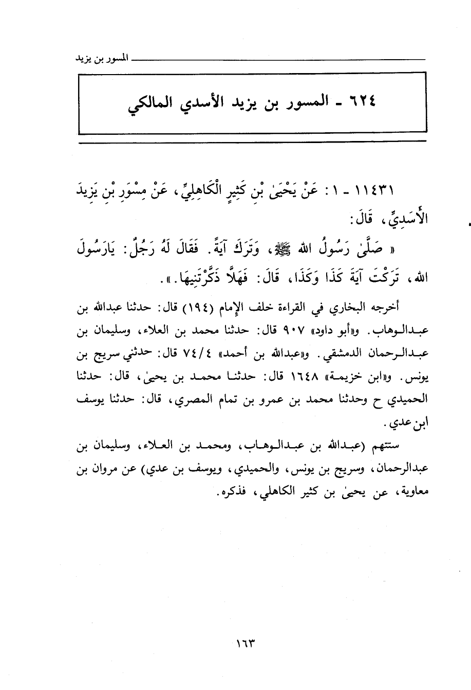 ١١٤٣١ - عَنْ يَحْيَى بْنِ كَثِيرٍ الْكَاهِلِيِّ، عَنْ مِسْوَرِ بْنِ يَزِيدَ الأَسَدِيِّ، قَالَ: