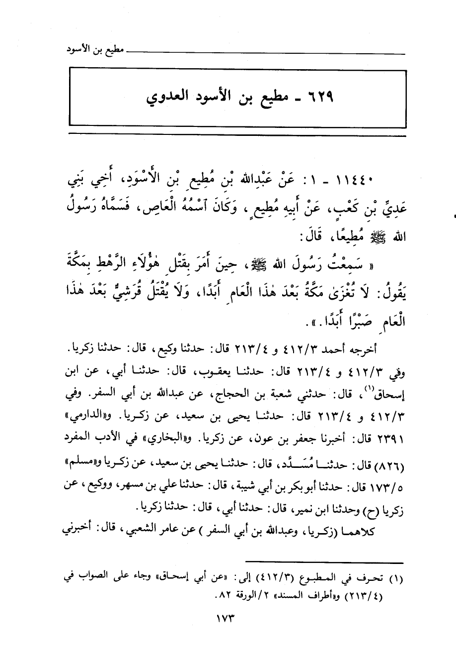 أخرجه الحُمَيدي ٥٦٨ قال: حدَّثنا سُفْيان، قال: حدَّثنا زكريا بن أَبي زائدة. أحمد ٣/ ٤١٢ (١٥٤٨٣) و ٤/ ٢١٣ (١٨٠٢٣) قال: حدَّثنا وَكِيع، حدَّثنا زكريا. وفي ٣/ ٤١٢ (١٥٤٨٤) و ٤/ ٢١٣ (١٨٠٢٤) قال: حدَّثنا يَعْقُوب، حدَّثنا أَبي، عن ابن إِسْحَاق، حدَّثني شُعْبة بن الحَجَّاج، عن عَبْد الله بن أَبي السَّفَر. وفي ٣/ ٤١٢ (١٥٤٨٥) و ٤/ ٢١٣ (١٨٠٢٢) قال: حدَّثنا يَحيى بن سَعِيد، عن زكريا. و"الدارِمِي" ٢٣٨٦ قال: أَخْبَرنا جَعْفَر بن عَوْن، عن زكريا. وفي (٢٣٨٧) قال: حدَّثنا يَعْلَى، حدَّثنا زكريا. والبخاري في "الأدب المفرد"٨٢٦ قال: حدَّثنا مُسَدَّد، قال: حدَّثنا يَحيى بن سَعِيد، عن زكريا. و"مسلم"٥/ ١٧٣ (٤٦٥٠) قال: حدَّثنا أبو بَكْر بن أَبي شَيْبَة، حدَّثنا علي بن مُسْهِر، ووَكِيع، عن زكريا. وفي (٤٦٥١) قال: حدَّثنا ابن نُمَيْر، حدَّثنا أَبي، حدَّثنا زكريا، بهذا الإسناد.