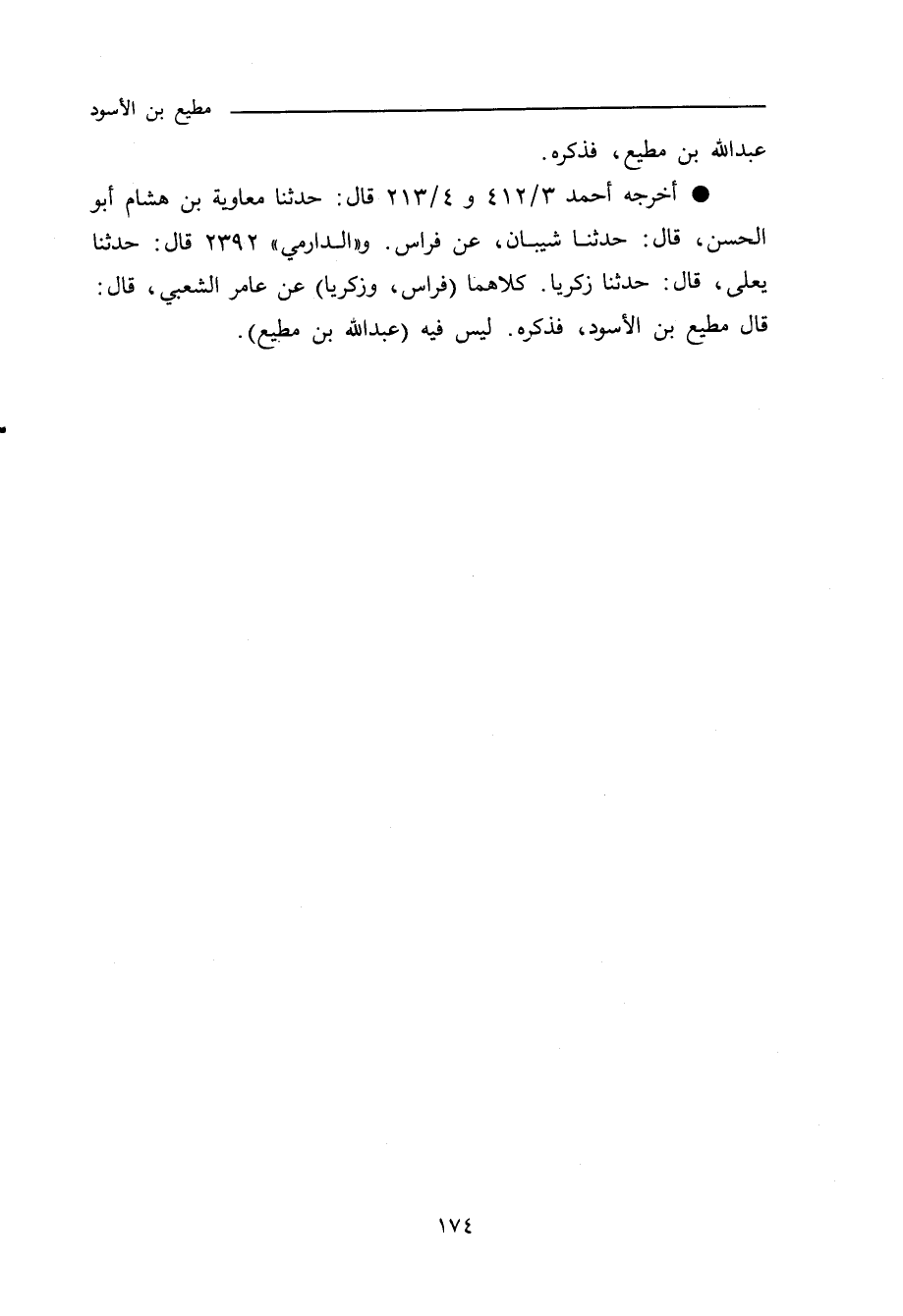 - أخرجه أحمد ٣/ ٤١٢ (١٥٤٨٢) و ٤/ ٢١٣ (١٨٠٢١) قال: حدَّثنا مُعَاوِية بن هِشَام، أبو الحَسَن، قال: حدَّثنا شَيْبَان، عن فِرَاس، عَنِ الشَّعْبِىِّ، قَالَ: قَالَ مُطِيعُ ابْنُ الأَسْوَدِ: