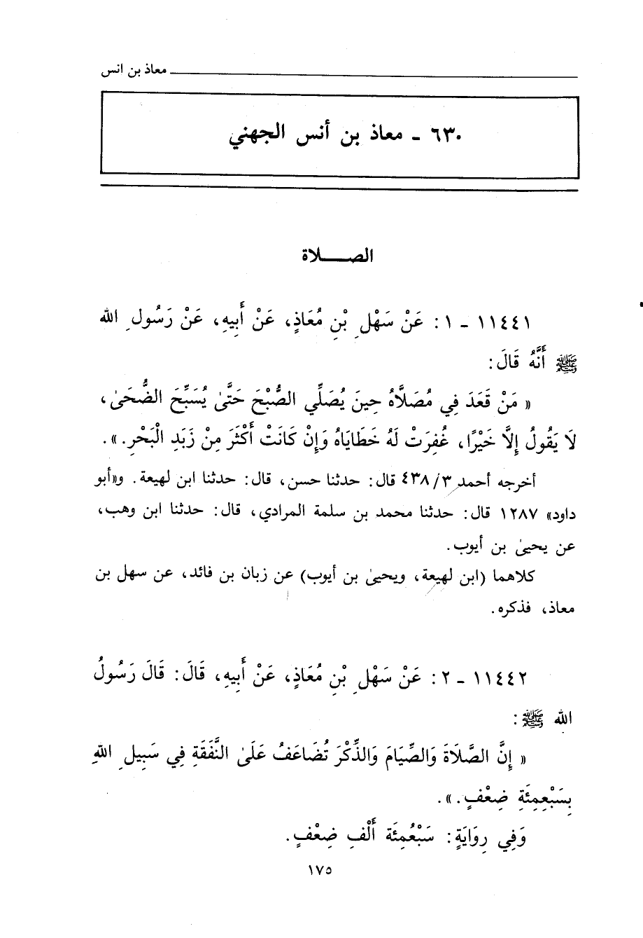 ١١٤٤٢ - عَنْ سَهْلِ بْنِ مُعَاذٍ، عَنْ أَبِيهِ، قَالَ: قَالَ رَسُولُ اللهِ صلى الله عليه وسلم: