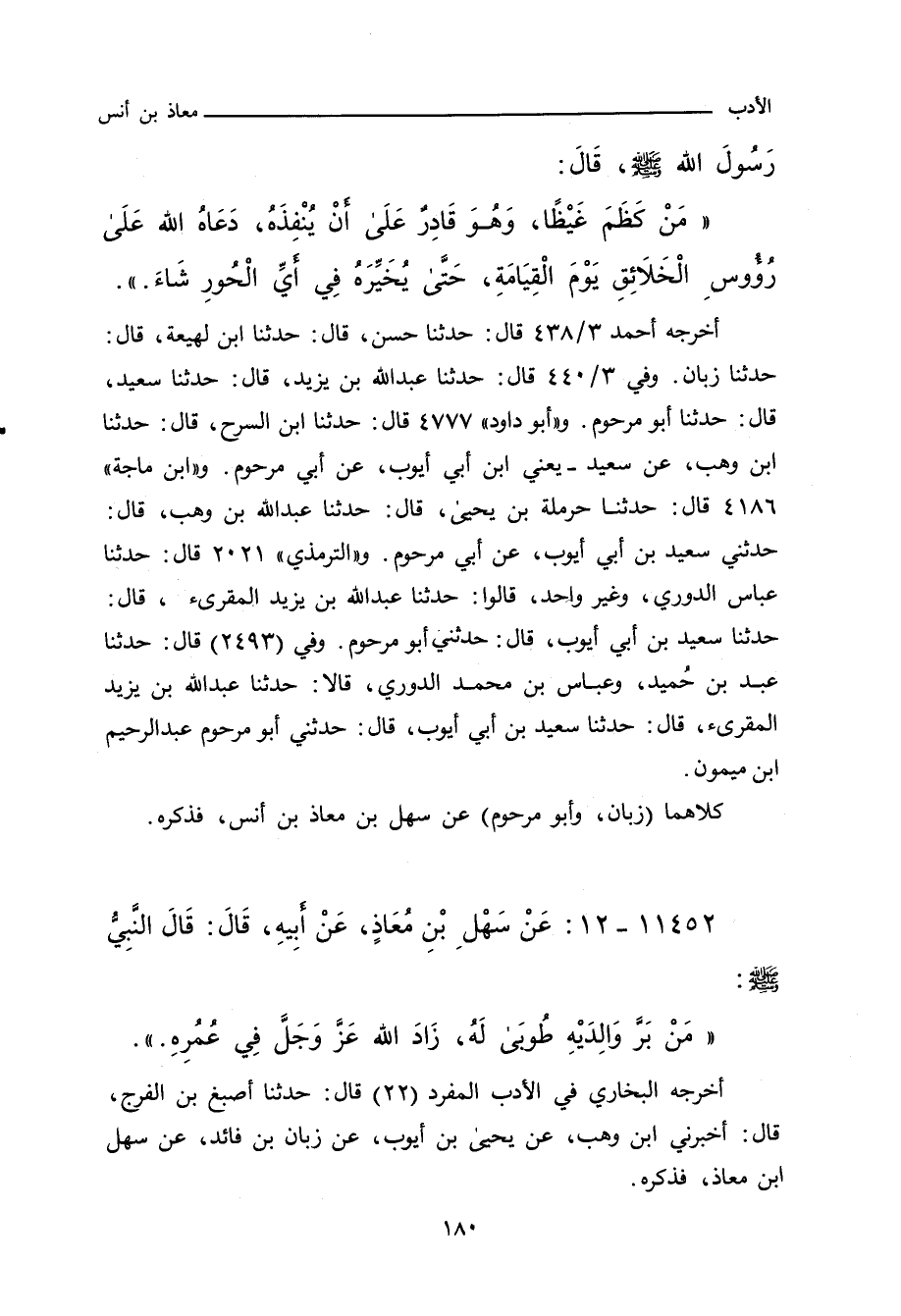 ١١٤٥٢ - عَنْ سَهْلِ بْنِ مُعَاذٍ، عَنْ أَبِيهِ، قَالَ: قَالَ النَّبِيُّ صلى الله عليه وسلم: