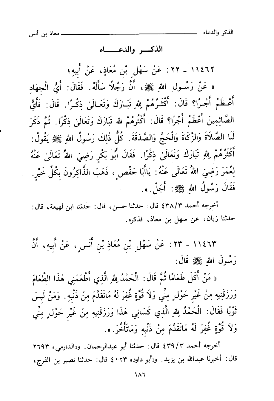 ١١٤٦٣ - عَنْ سَهْلِ بْنِ مُعَاذِ بْنِ أَنَسٍ، عَنْ أَبِيهِ، أَنَّ رَسُولَ اللهِ صلى الله عليه وسلم قَالَ: