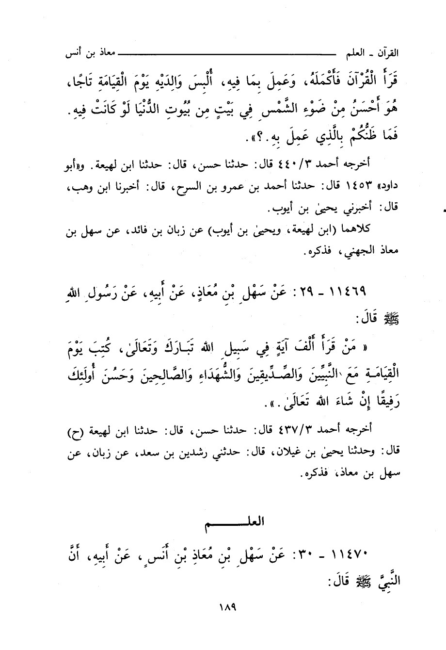 ١١٤٦٩ - عَنْ سَهْلِ بْنِ مُعَاذٍ، عَنْ أَبِيهِ، عَنْ رَسُولِ اللهِ صلى الله عليه وسلم، قَالَ: