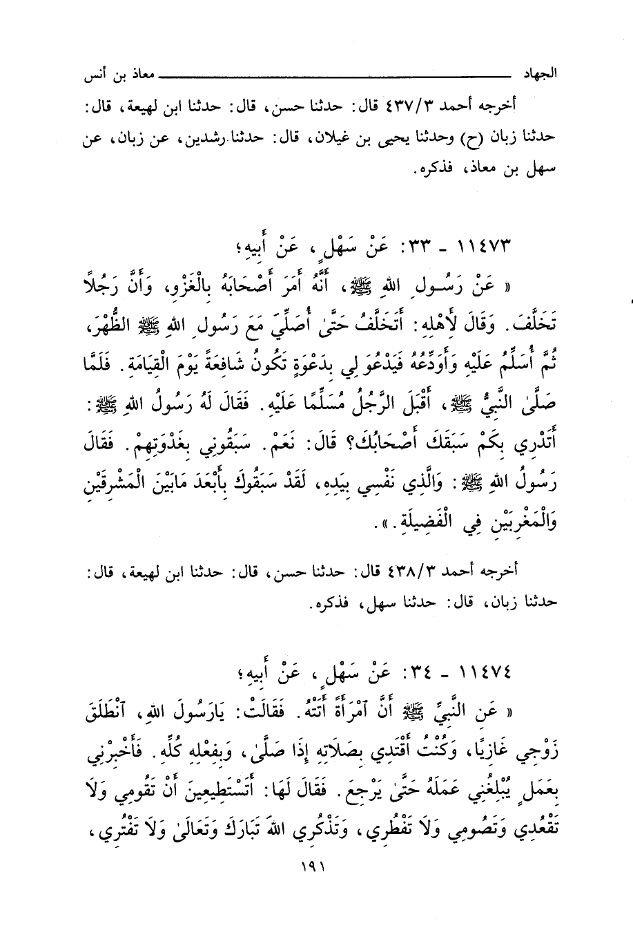 عَنْ رَسُولِ اللهِ صلى الله عليه وسلم، أَنَّهُ أَمَرَ أَصْحَابَهُ بِالْغَزْوِ، وَأَنَّ رَجُلاً تَخَلَّفَ، وَقَالَ لأَهْلِهِ: أَتَخَلَّفُ حَتَّى أُصَلِّيَ مَعَ رَسُولِ اللهِ صلى الله عليه وسلم الظُّهْرَ، ثُمَّ أُسَلِّمَ. يْهِ، وَأُوَدِّعَهُ، فَيَدْعُوَ لِي بِدَعْوَةٍ، تَكُونُ شَافِعَةً يَوْمَ الْقِيَامَةِ، فَلَمَّا صَلَّى النَّبِيُّ صلى الله عليه وسلم، أَقْبَلَ الرَّجُلُ مُسَلِّمًا. يْهِ، فَقَالَ لَهُ رَسُولُ اللهِ صلى الله عليه وسلم: أَتَدْرِي بِكَمْ سَبَقَكَ أَصْحَابُكَ؟ قَالَ: نَعَمْ، سَبَقُونِي بِغَدْوَتِهِمْ، فَقَالَ رَسُولُ اللهِ صلى الله عليه وسلم: وَالَّذِي نَفْسِي بِيَدِهِ، لَقَدْ سَبَقُوكَ بِأَبْعَدَ مَا بَيْنَ الْمَشْرِقَيْنِ وَالْمَغْرِبَيْنِ فِي الْفَضِيلَةِ.