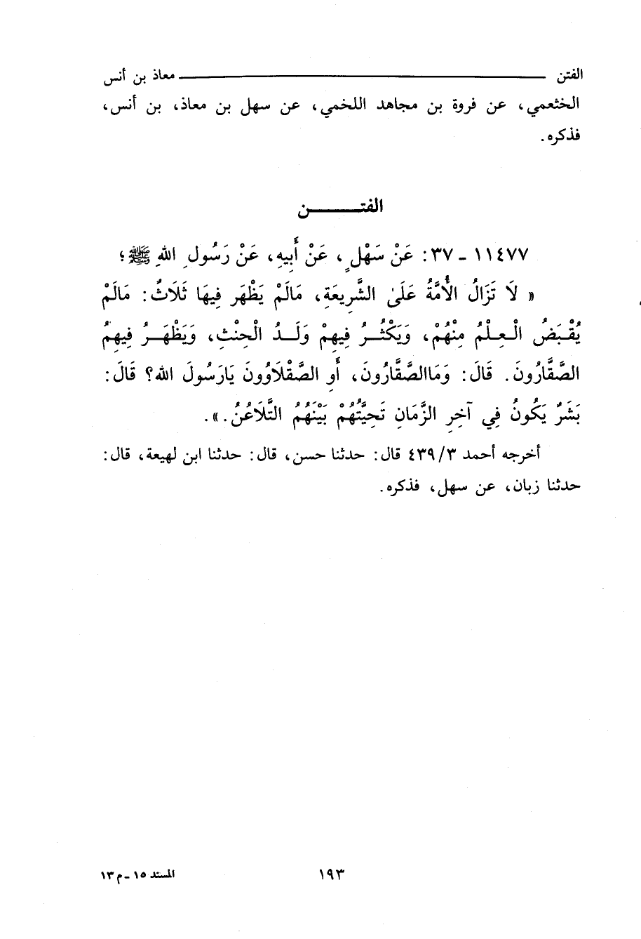 ١١٤٧٧ - عَنْ سَهْلٍ، عَنْ أَبِيهِ، عَنْ رَسُولِ اللهِ صلى الله عليه وسلم؛ أَنَّهُ قَالَ: