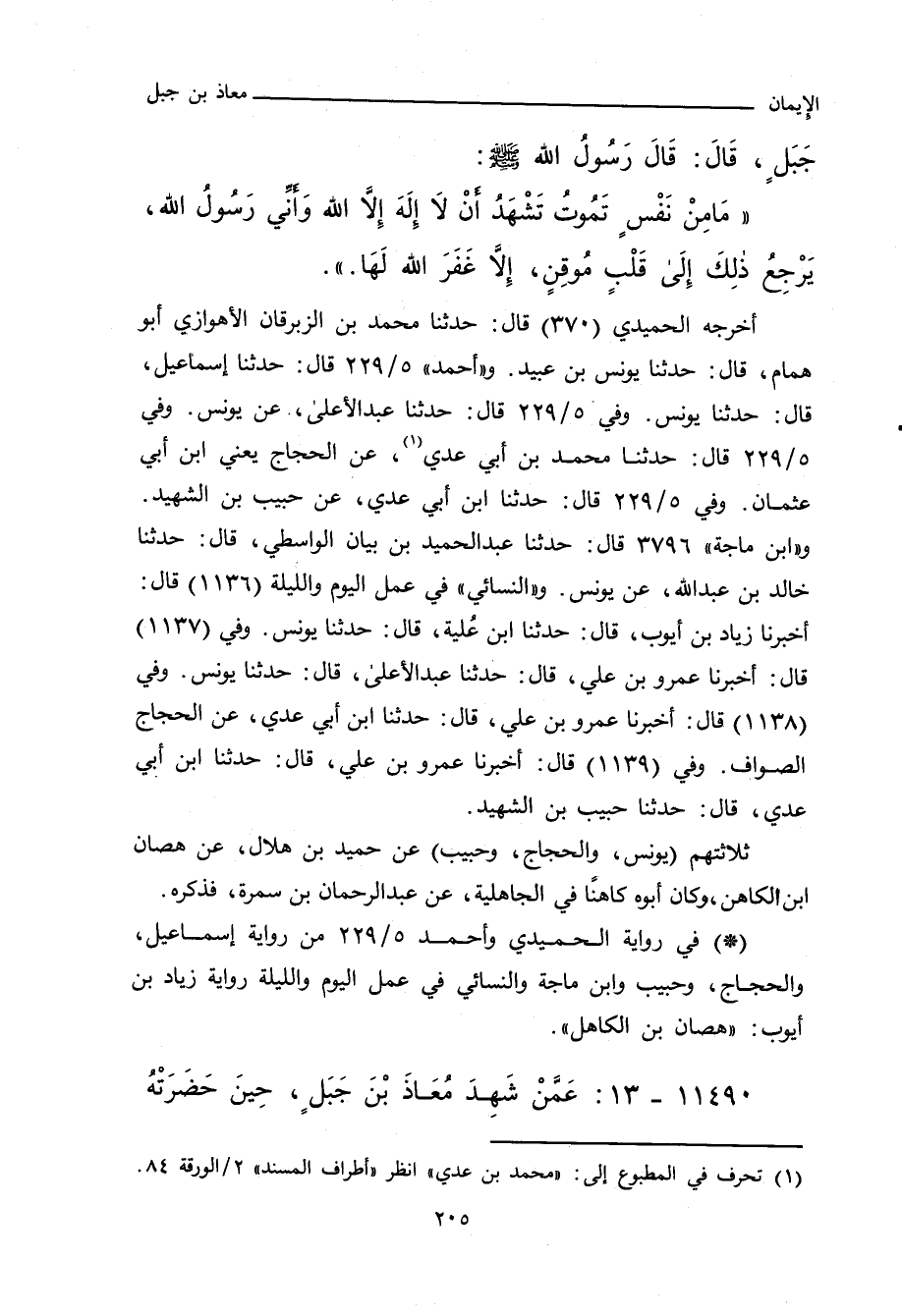 - في رواية الحُمَيْدِي، وأحمد من رواية إِسْمَاعِيل، وعَبْد الأَعْلَى، وحَبِيب، وابن ماجة، والنَّسَائِي في) عمل اليوم والليلة (من رواية زِيَاد بن أَيُّوب: هِصَّان بن الكاهل (.