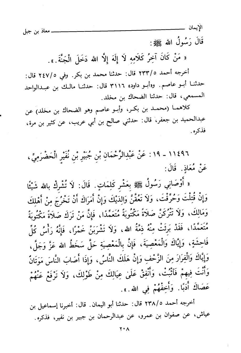 ١١٤٩٦ - عَنْ عَبْدِ الرَّحْمَانِ بْنِ جُبَيْرِ بْنِ نُفَيْرٍ الْحَضْرَمِيِّ، عَنْ مُعَاذٍ، قَالَ: