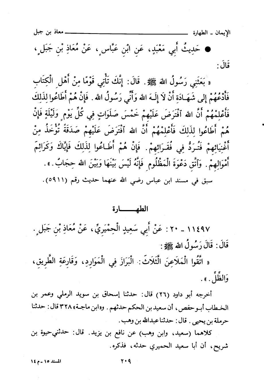 - حَدِيثُ أَبِي مَعْبَدٍ، عَنِ ابْنِ عَبَّاسٍ، عَنْ مُعَاذِ بْنِ جَبَلٍ، قَالَ: