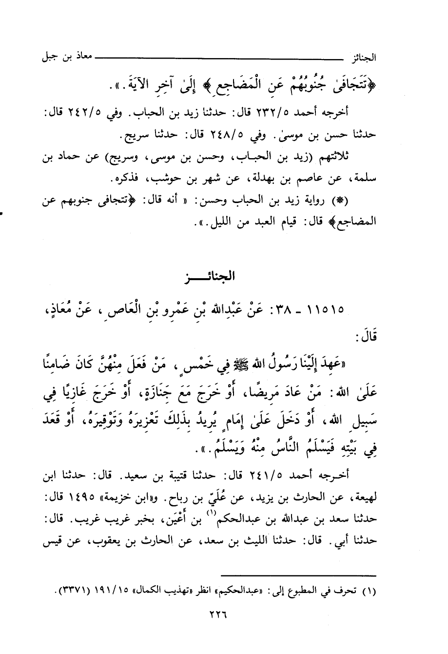 ١١٥١٥ - عَنْ عَبْدِ اللهِ بْنِ عَمْرِو بْنِ الْعَاصِ، عَنْ مُعَاذٍ، قَالَ: