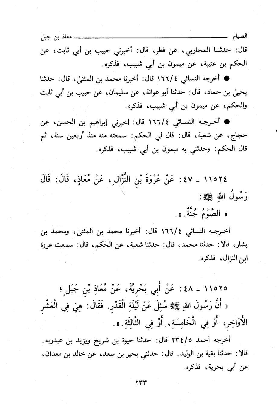 - وأخرجه النَّسَائِي ٤/ ١٦٦، وفي "الكبرى"٢٥٤٦ قال: أَخْبَرنا مُحَمد بن المُثَنَّى، قال: حدَّثنا يَحيى بن حَمَّاد، قال: حدَّثنا أبو عَوَانَة، عن سُلَيْمان، عن حَبِيب بن أَبي ثابت، والحَكَم، عن مَيْمُون بن أَبي شَبِيب، عَنْ مُعَاذِ بْنِ جَبَلٍ، قَالَ: قَالَ رَسُولُ اللهِ صلى الله عليه وسلم: