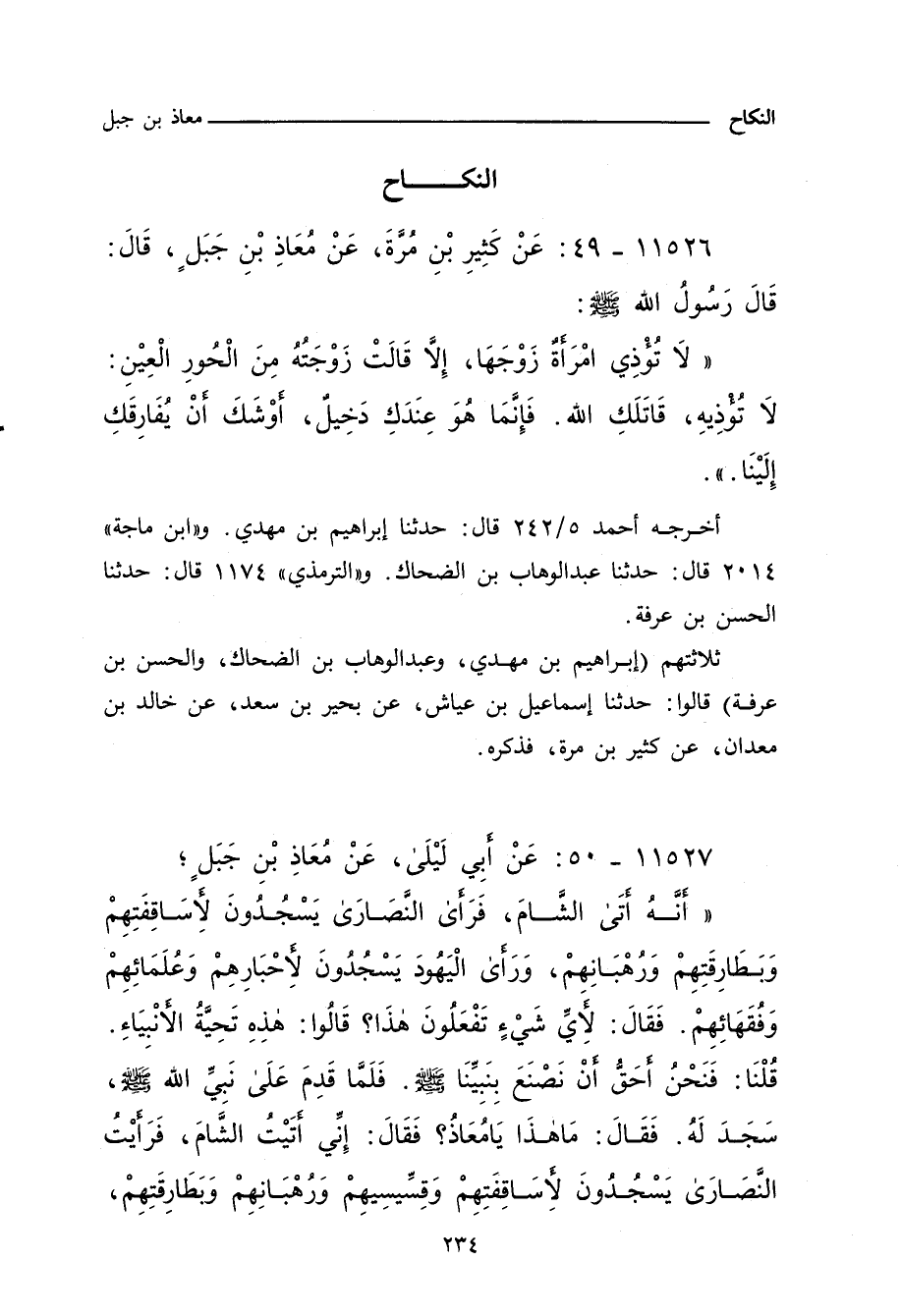 ١١٥٢٦ - عَنْ كَثِيرِ بْنِ مُرَّةَ الْحَضْرَمِيِّ، عَنْ مُعَاذِ بْنِ جَبَلٍ، عَنِ النَّبِيِّ صلى الله عليه وسلم، قَالَ: