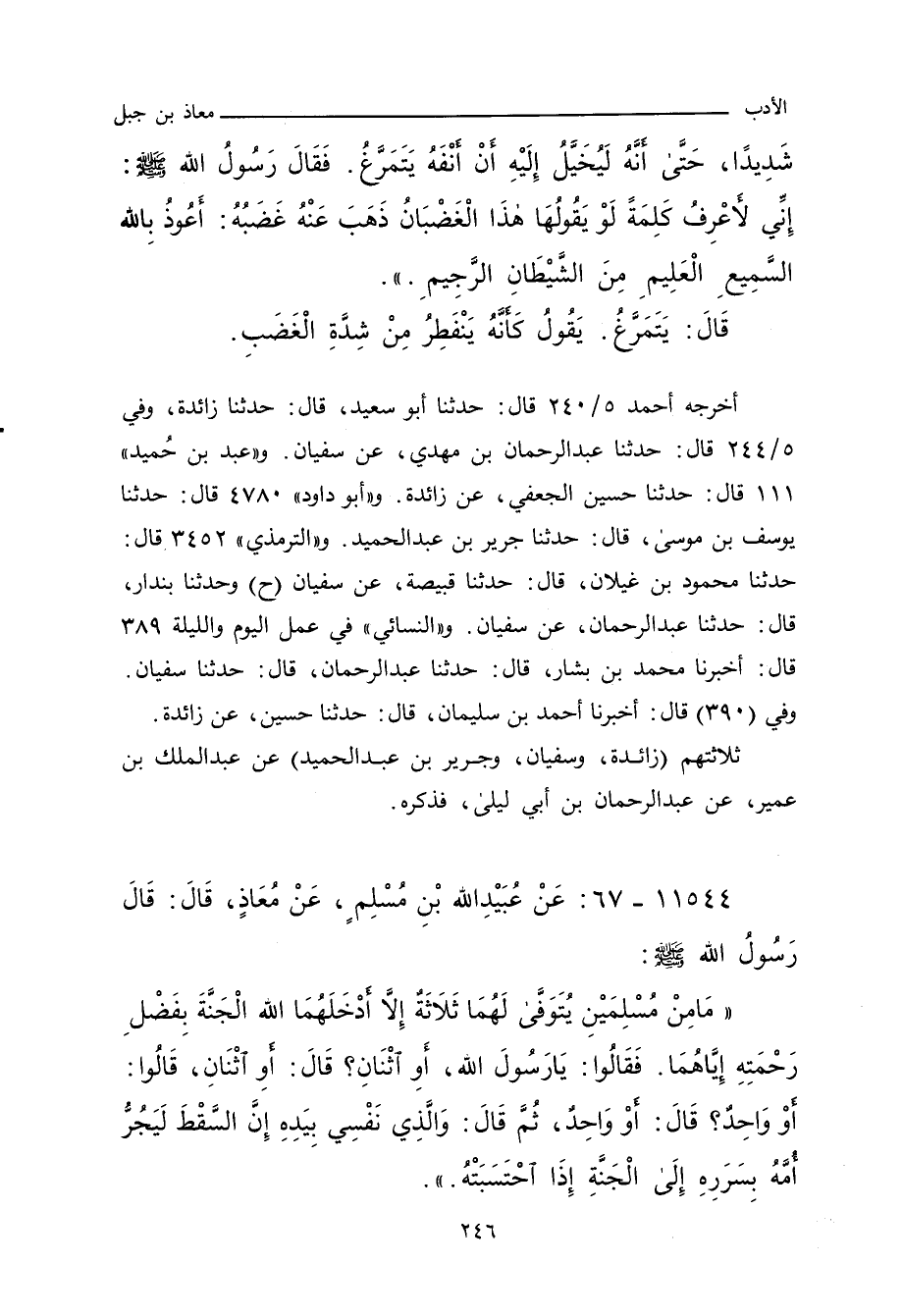 شَدِيدًا، حَتَّى إِنَّهُ لَيُخَيَّلُ إِلَيْهِ أَنْ أَنْفَهُ يَتَمَزَّعُ، فَقَالَ رَسُولُ اللهِ صلى الله عليه وسلم: إِنِّي لأَعْرِفُ كَلِمَةً، لَوْ يَقُولُهَا هَذَا الْغَضْبَانُ، ذَهَبَ عَنْهُ غَضَبُهُ: أَعُوذُ بِاللهِ السَّمِيعِ الْعَلِيمِ مِنَ الشَّيْطَانِ الرَّجِيمِ.