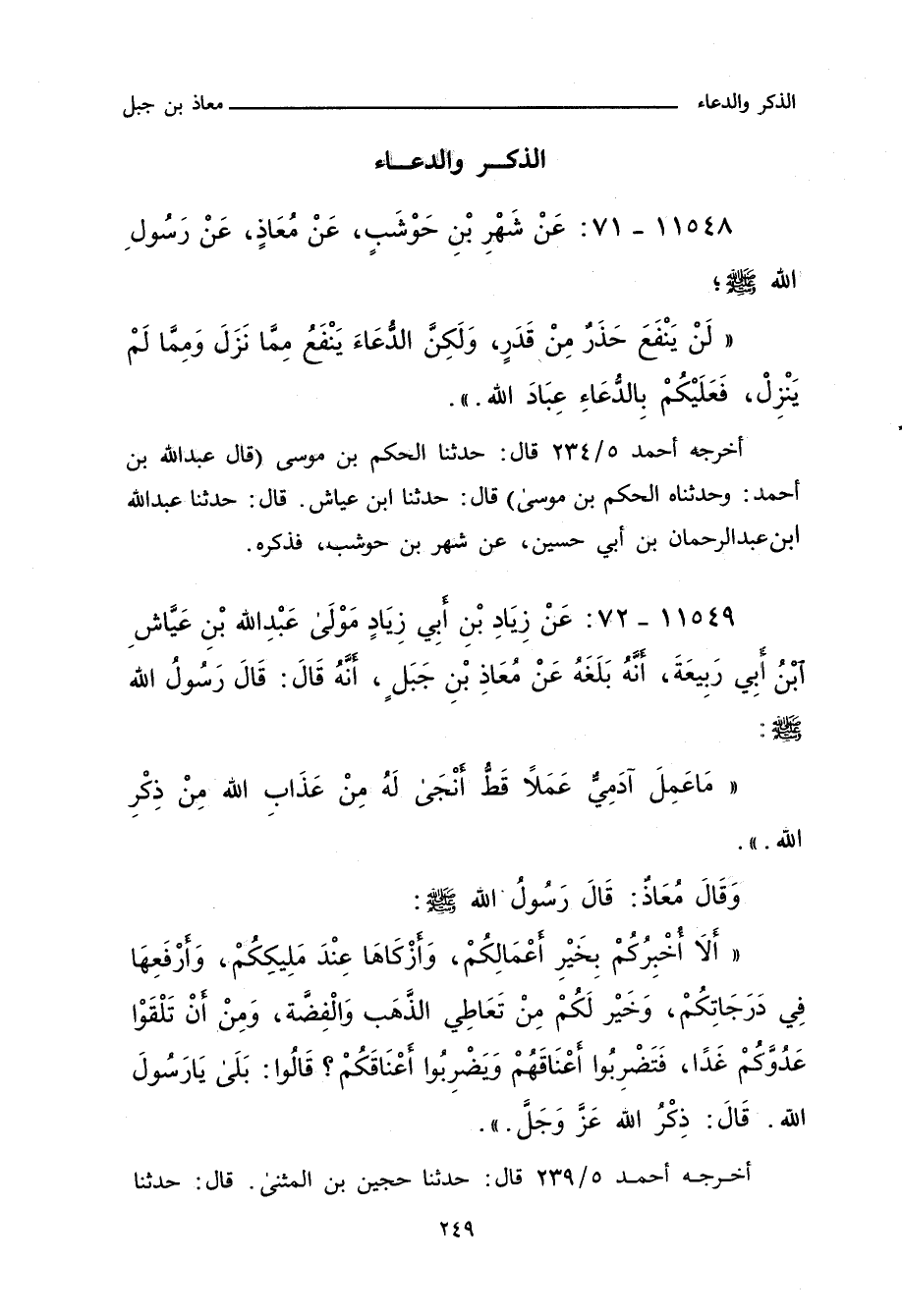 ١١٥٤٨ - عَنْ شَهْرِ بْنِ حَوْشَبٍ، عَنْ مُعَاذٍ، عَنْ رَسُولِ اللهِ صلى الله عليه وسلم؛