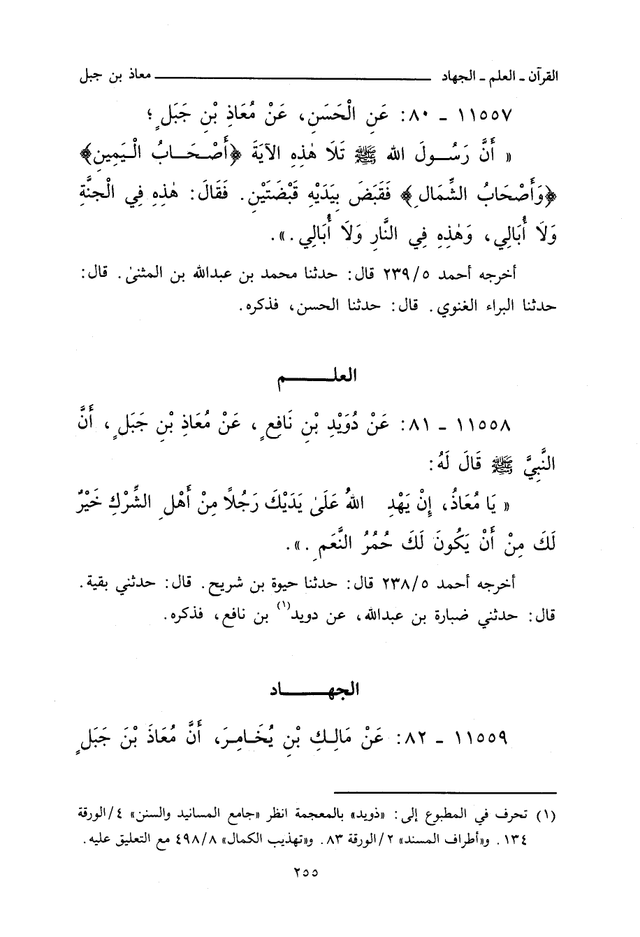 ١١٥٥٨ - عَنْ دُوَيْدِ بْنِ نَافِعٍ، عَنْ مُعَاذِ بْنِ جَبَلٍ؛