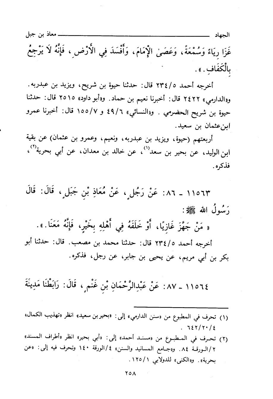 أربعتهم (حَيْوَة، ويَزِيد بن عَبْد ربِّه، ونُعَيْم، وعَمْرو بن عُثْمَان) عن بَقِيَّة بن الوَلِيد، عن بَحِير بن سَعْد، عن خالد بن مَعْدَان، عن أَبي بَحْرِيَّة، فذكره.