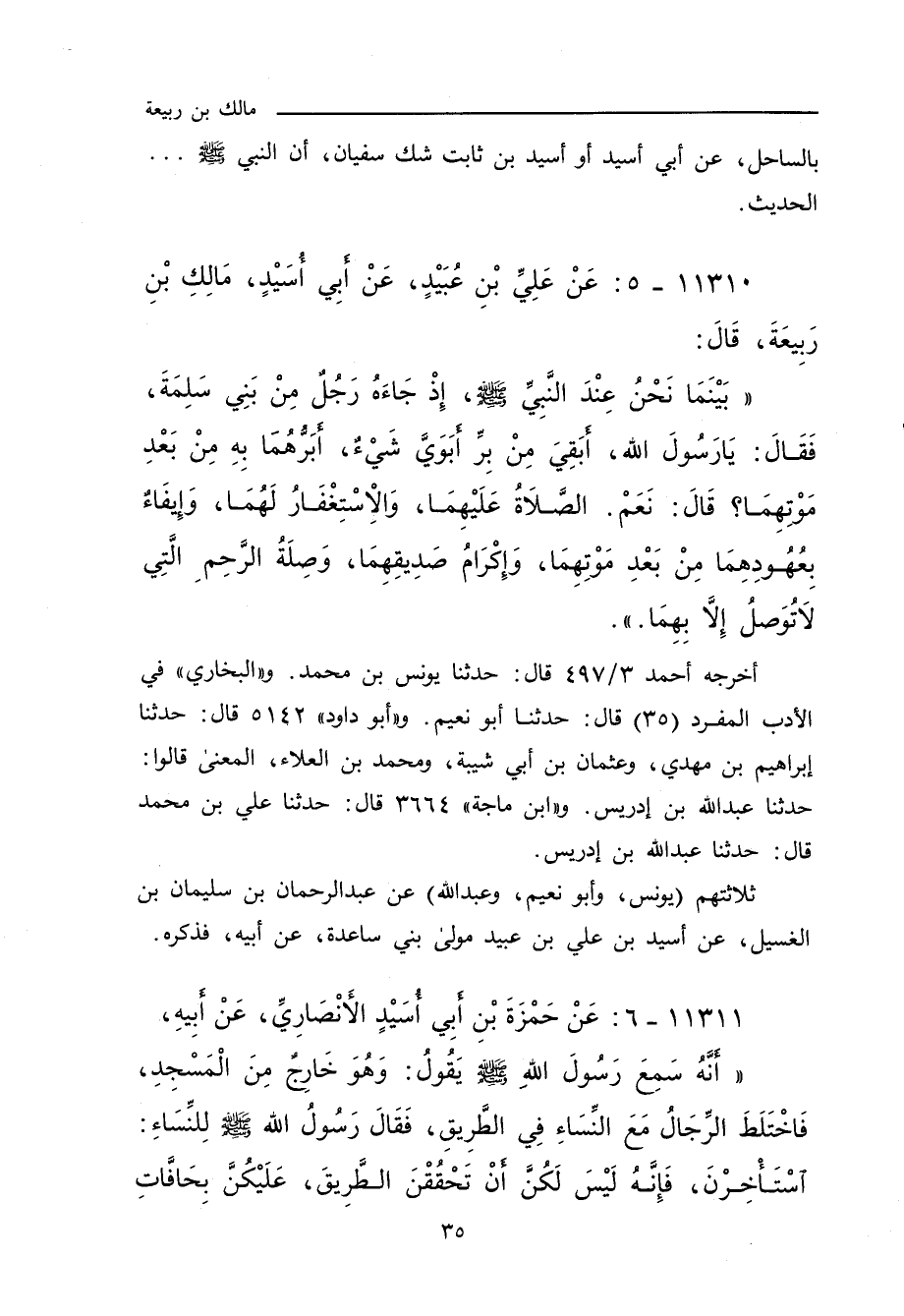 ١١٣١٠ - عَنْ عَلِيِّ بْنِ عُبَيْدٍ، عَنْ أَبِي أُسَيْدٍ، مَالِكِ بْنِ رَبِيعَةَ، قَالَ: