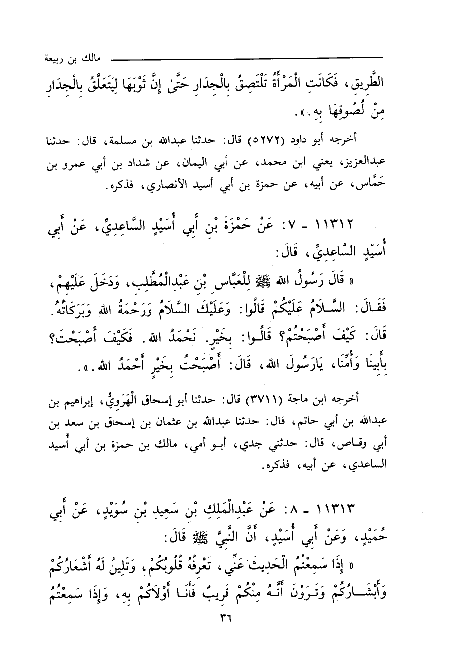 ١١٣١٢ - عَنْ حَمْزَةَ بْنِ أَبِي أُسَيْدٍ السَّاعِدِيُّ، عَنْ أَبِي أُسَيْدٍ السَّاعِدِيِّ، قَالَ:
