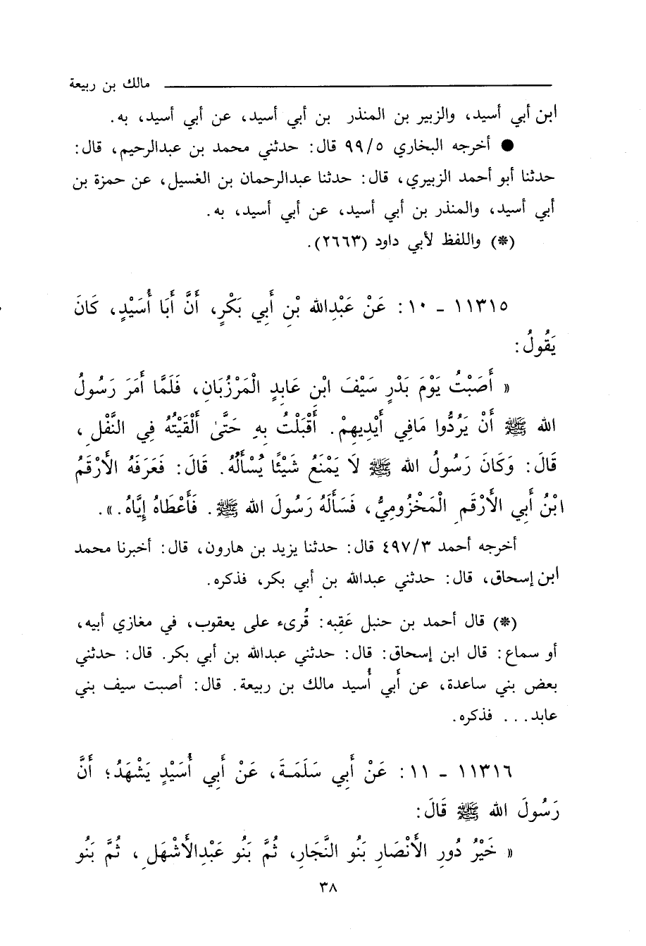 - وأخرجه البُخَارِي ٥/ ٩٩ (٣٩٨٥) قال: حدَّثني مُحَمد بن عَبْد الرَّحِيم، حدَّثنا أبو أحمد الزُّبَيْرِي، حدَّثنا عَبْد الرَّحْمان بن الغَسِيل، عن حَمْزَة بن أَبي أُسَيْد، والمُنْذِر بن أَبي أُسَيْد، عَنْ أَبِي أُسَيْدٍ، رَضِيَ اللهُ عَنْهُ، قَالَ: