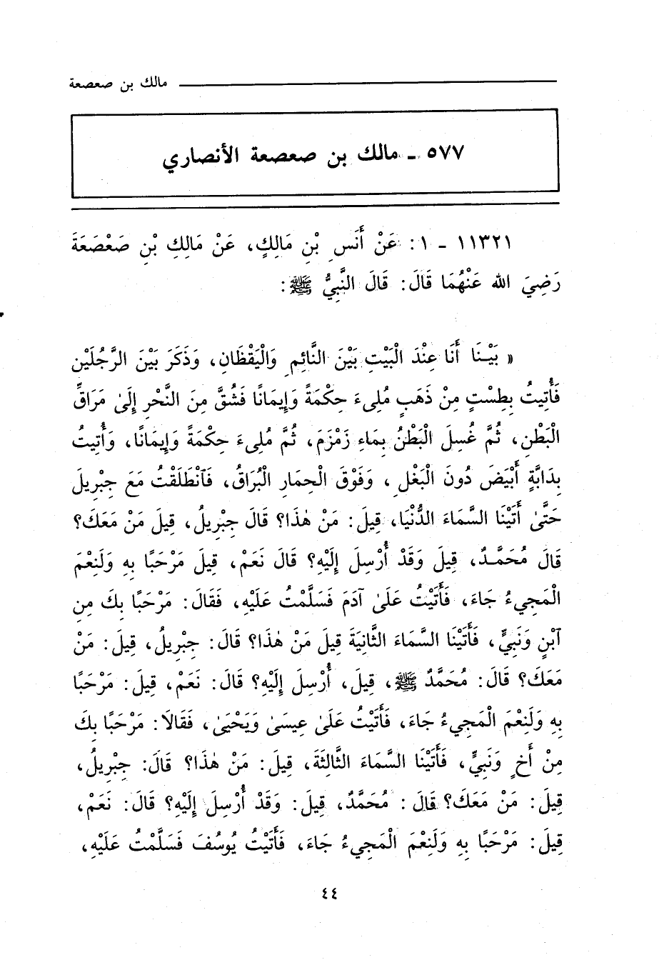 ١١٣٢١ - عَنْ أَنَسِ بْنِ مَالِكٍ، عَنْ مَالِكِ بْنِ صَعْصَعَةَ، رَضِيَ اللهُ عَنْهُمَا، قَالَ: قَالَ النَّبِيُّ صلى الله عليه وسلم: