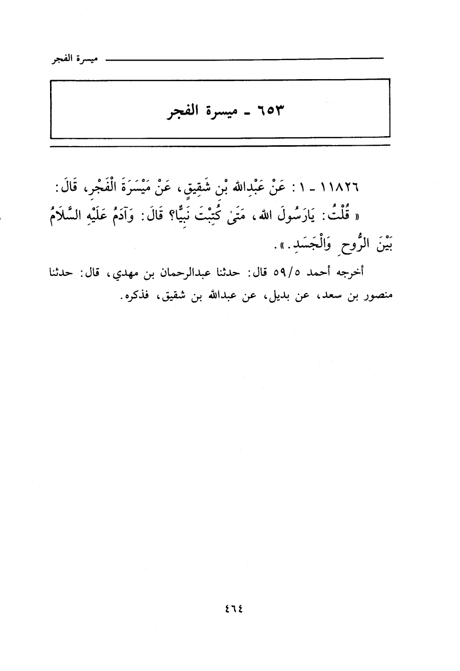 ١١٨٢٦ - عَنْ عَبْدِ اللهِ بْنِ شَقِيقٍ، عَنْ مَيْسَرَةَ الْفَجْرِ، قَالَ: