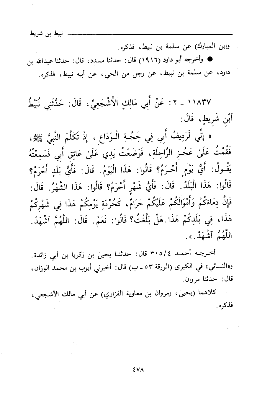 ١١٨٣٧ - عَنْ أَبِي مَالِكٍ الأَشْجَعِيِّ، حَدَّثَنِي نُبَيْطُ بْنُ شَرِيطٍ، قَالَ: