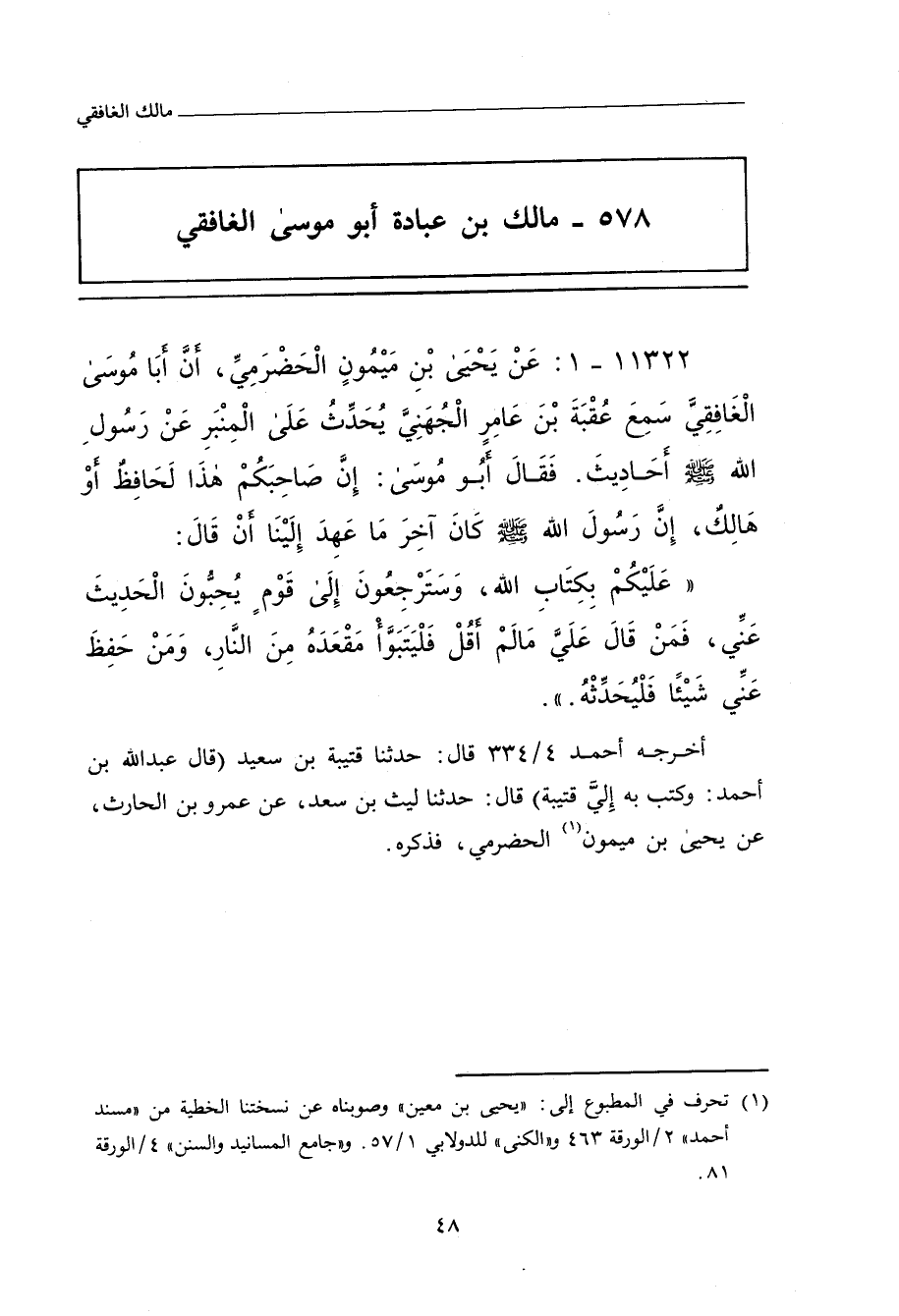 ٥٧٨ - مالك بن عُبَادَة، أبو مُوسَى الغَافِقِيُّ