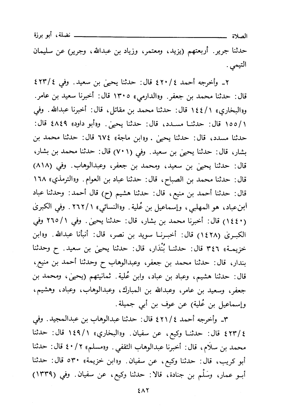 حدَّثنا جرير، عن سليمان التيمي. وفي (٥٣٠) قال: حدَّثنا أبو عمار، وسَلْم بن جنادة، قالا: حدَّثنا وكيع، عن سفيان، عن خالد. وفي (١٣٣٩)