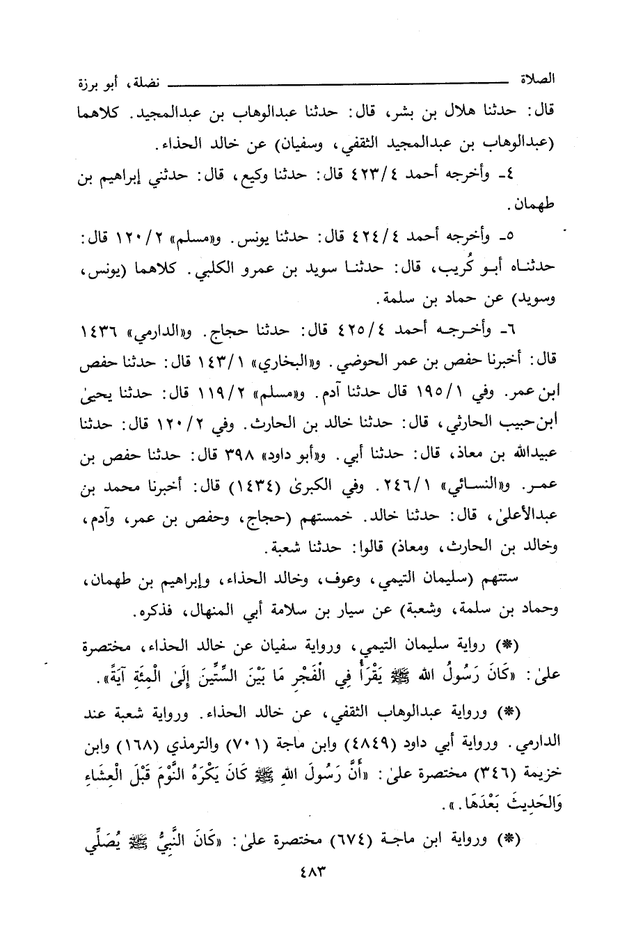 قال: حدَّثنا هلال بن بشر، حدَّثنا عبد الوهاب بن عبد المجيد، حدَّثنا خالد.