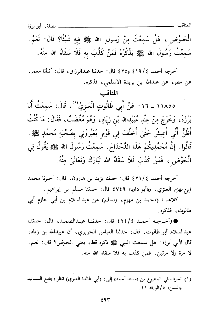 - أخرجه أحمد ٤/ ٤٢٤ (٢٠٠٤٥) قال: حدَّثنا عبد الصمد، حدَّثنا عبد السلام، أبو طالوت، حدَّثنا العباس الجريري، أَنَّ عُبَيْدَ اللهِ بْنَ زِيَادٍ قَالَ لأَبِي بَرْزَةَ: هَلْ سَمِعْتَ النَّبِيَّ صلى الله عليه وسلم ذَكَرَهُ قَطُّ، يَعْنِي الْحَوْضَ؟ قَالَ: نَعَمْ، لَا مَرَّةً، وَلَا مَرَّتَيْنِ، فَمَنْ كَذَّبَ بِهِ فَلَا سَقَاهُ اللهُ مِنْهُ.