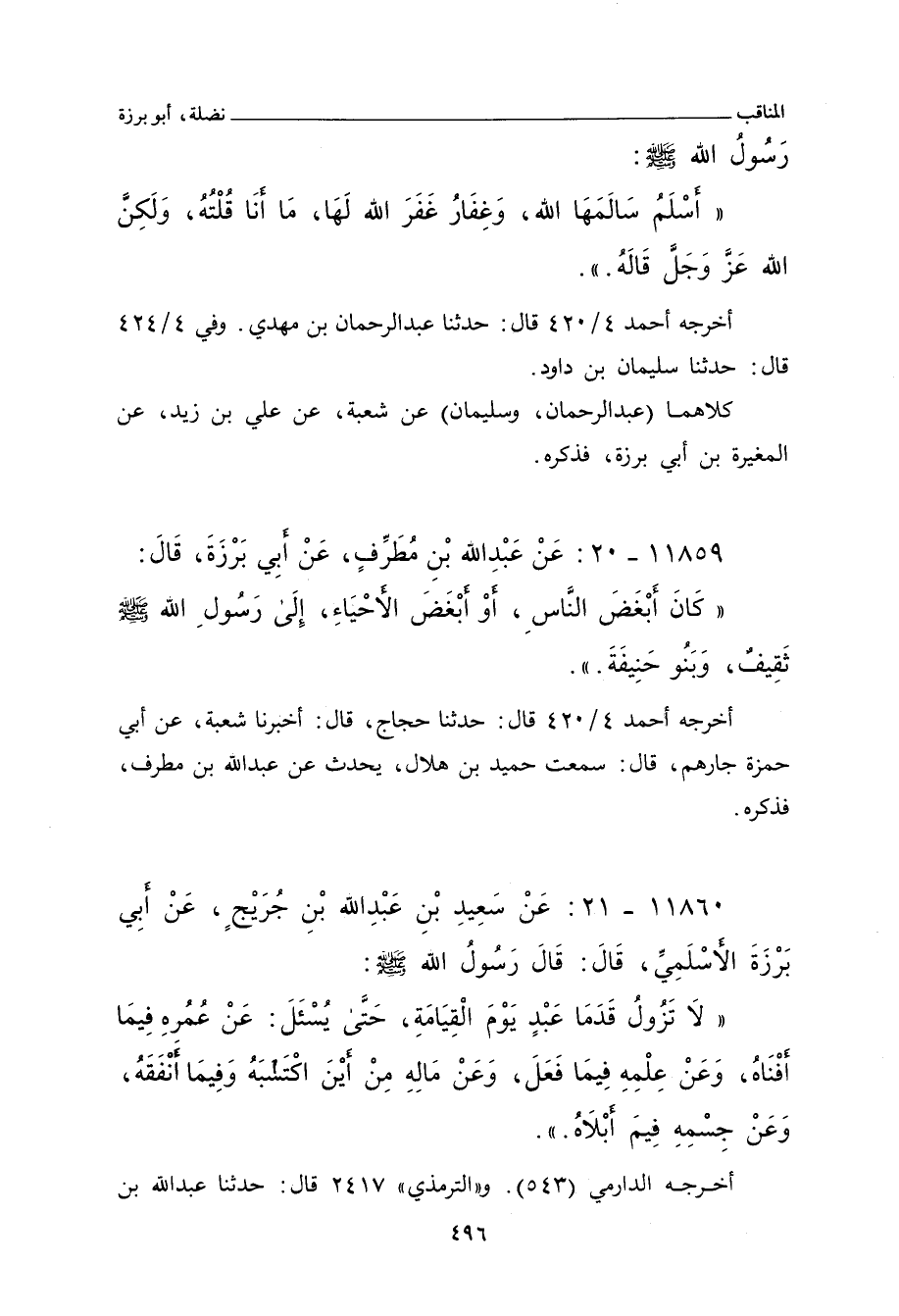 ١١٨٥٩ - عَنْ عَبْدِ اللهِ بْنِ مُطَرِّفٍ، عَنْ أَبِي بَرْزَةَ، قَالَ: