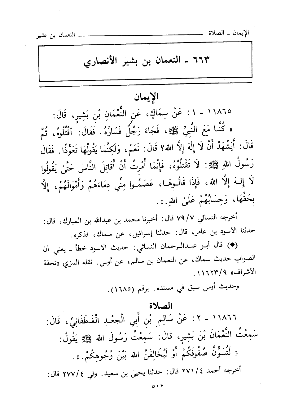 ٦٦٣ - النُّعْمَان بن بَشِير الأَنْصَارِيُّ