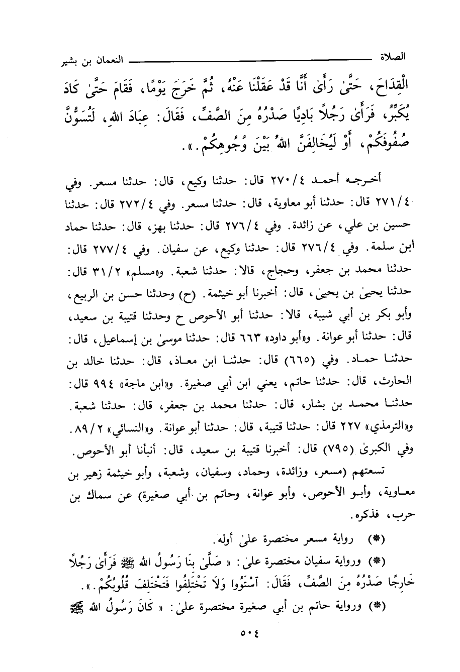تسعتهم (سُفْيَان الثَّوْرِي، وأبو الأَحْوَص، ومِسْعَر، وزائدة، وحَمَّاد بن سَلَمَة، وشُعْبة، وأبو خَيْثَمَة، زُهَيْر بن مُعَاوِيَة، وأبو عَوَانَة، وحاتم بن أَبي صَغِيرَة) عن سِمَاك بن حَرْب، فذكره.