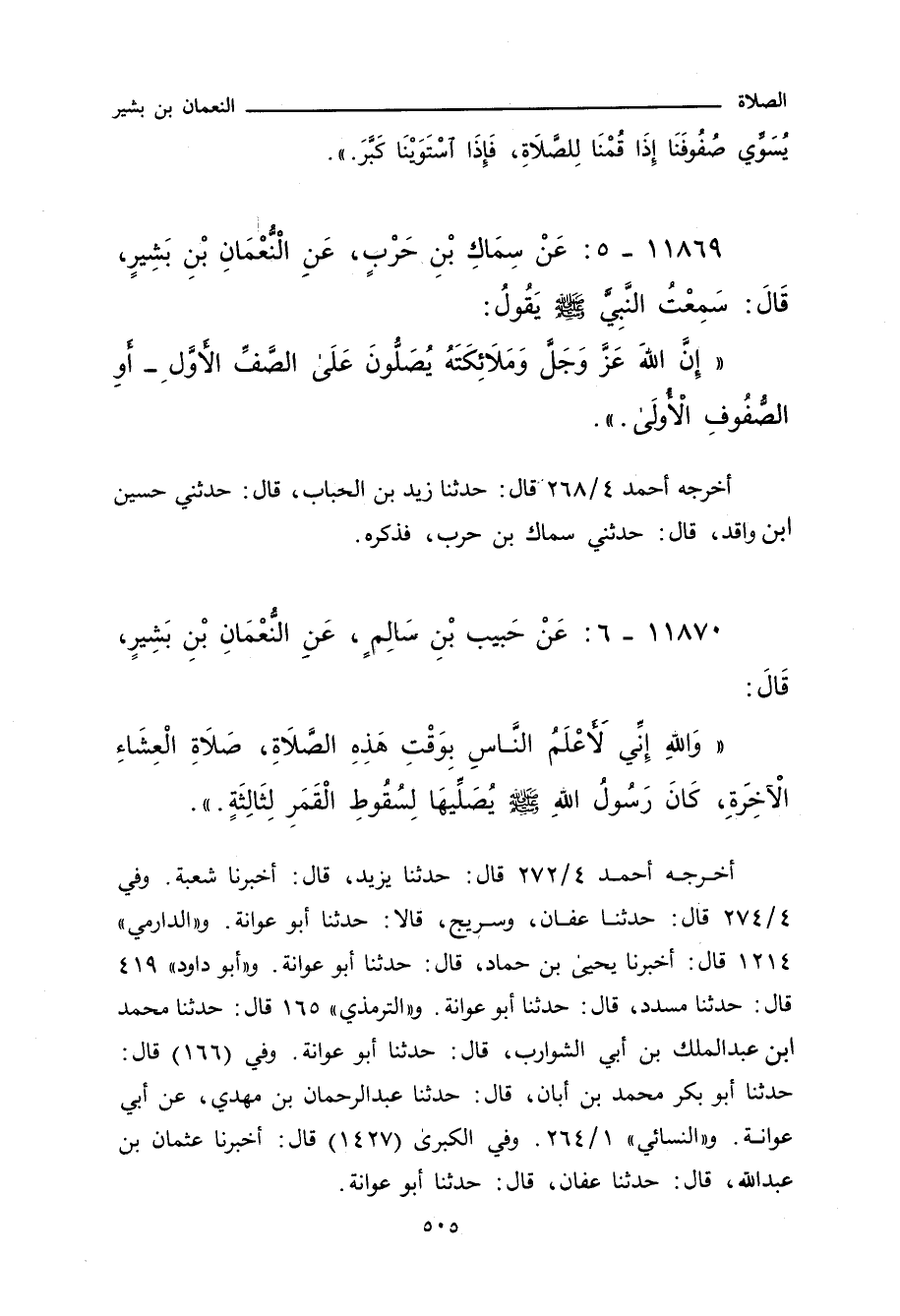 ١١٨٦٩ - عَنْ سِمَاكِ بْنِ حَرْبٍ، عَنِ النُّعْمَانِ بْنِ بَشِيرٍ، قَالَ: سَمِعْتُ النَّبِيَّ صلى الله عليه وسلم يَقُولُ:
