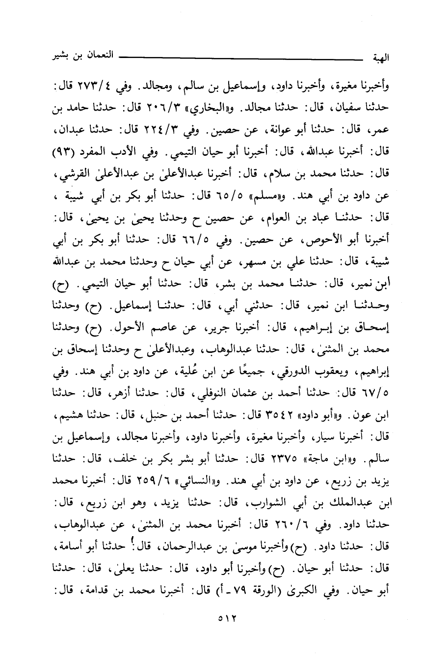 حدَّثنا إِسْمَاعِيل بن إبراهيم، عن داود بن أَبي هِنْد. وفي ٥/ ٦٧ (٤١٩٤ و ٤١٩٥) قال: حدَّثنا أحمد بن عُثْمَان النَّوْفَلِي، حدَّثنا أَزْهَر، حدَّثنا ابن عَوْن. و"أبو داود"٣٥٤٢ قال: حدَّثنا أحمد بن حَنْبَل، حدَّثنا هُشَيْم، أَخْبَرنا سَيَّار، وأخبرنا مُغِيرَة، وأخبرنا داود، وأخبرنا مُجَالِد، وإِسْمَاعِيل بن سالم. و"ابن ماجة"٢٣٧٥ قال: حدَّثنا أبو بِشْر، بَكْر بن خَلَف، حدَّثنا يَزِيد بن زُرَيْع، عن داود بن أَبي هِنْد. و"النَّسائي"٦/ ٢٥٩، وفي "الكبرى"٦٤٧٣ قال: أَخْبَرنا مُحَمد بن عَبْد الملك بن أَبي الشَّوَارِب، قال: حدَّثنا يَزِيد، وهو ابن زُرَيْع، قال: حدَّثنا داود. وفي ٦/ ٢٦٠، وفي "الكبرى"٦٤٧٤ قال: أَخْبَرنا مُحَمد ابن المُثَنَّى، عن عَبْد الوهَّاب، قال: حدَّثنا داود. وفي ٦/ ٢٦٠، وفي "الكبرى"٦٤٧٥ قال: أَخْبَرنا مُوسَى بن عَبْد الرَّحْمان، قال: حدَّثنا أبو أُسَامة، قال: حدَّثنا أبو حَيَّان. وفي ٦/ ٢٦٠، وفي "الكبرى"٦٤٧٦ قال: أَخْبَرنا أبو داود، قال: حدَّثنا يَعْلَى، قال: حدَّثنا أبو حَيَّان. وفي) الكبرى (٥٩٧٩ قال: أَخْبَرنا مُحَمد بن قُدَامَة، قال: