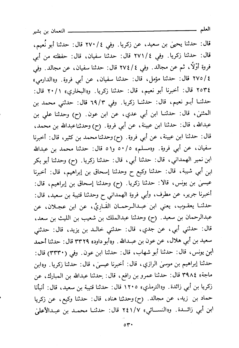 قال: حدَّثنا يَحيى بن سَعِيد، عن زكريا. وفي (١٨٥٦٥) قال: حدَّثنا أبو نُعَيْم، قال: حدَّثنا زكريا. وفي ٤/ ٢٧١ (١٨٥٧٤) قال: حدَّثنا سُفْيَان، قال: حفظتُه من أَبي فَرْوَة أوَّلاً، ثم من مُجَالِد. وفي ٤/ ٢٧٤ (١٨٦٠٢) قال: حدَّثنا سُفْيَان، عن مُجَالِد. وفي ٤/ ٢٧٥ (١٨٦٠٨) قال: حدَّثنا مُؤَمَّل، حدَّثنا سُفْيَان، عن أَبي فَرْوَة. و"الدارِمِي" ٢٥٣١ قال: أَخْبَرنا أبو نُعَيْم، حدَّثنا زكريا. و"البُخَارِي" ١/ ٢٠ (٥٢) قال: حدَّثنا أبو نُعَيْم، حدَّثنا زكريا. وفي ٣/ ٦٩ (٢٠٥١) قال: حدَّثني مُحَمد بن المُثَنَّى، حدَّثنا ابن أَبي عَدِي، عن ابن عَوْن (ح) وحدَّثنا علي بن عَبْد الله، حدَّثنا ابن عُيَيْنَة، عن أَبي فَرْوَة (ح) وحدَّثنا عَبْد الله بن مُحَمد، حدَّثنا ابن عُيَيْنَة، عن أَبي فَرْوَة (ح) وحدَّثنا مُحَمد بن كَثِير، أَخْبَرنا سُفْيَان، عن أَبي فَرْوَة. و"مسلم"٥/ ٥٠ (٤١٠١) قال: حدَّثنا مُحَمد بن عَبْد الله بن نُمَيْر الهَمْدَانِي، حدَّثنا أَبي، حدَّثنا زكريا. وفي ٥/ ٥١ (٤١٠٢) قال: وحدَّثنا أبو بَكْر بن أَبي شَيْبَة، حدَّثنا وَكِيع (ح) وحدَّثنا إِسْحَاق بن إبراهيم، أَخْبَرنا عِيسَى بن يُونُس، قالا: حدَّثنا زكريا. وفي (٤١٠٣) قال: وحدَّثنا إِسْحَاق بن إبراهيم، أَخْبَرنا جَرِير، عن مُطَرِّف، وأَبي فَرْوَة الهَمْدَانِي (ح) وحدَّثنا قُتَيْبَة بن سَعِيد، حدَّثنا يَعْقُوب، يَعْنِي ابن عَبْد الرَّحْمان القَارِيَّ، عن ابن عَجْلان، عن عَبْد الرَّحْمان بن سَعِيد. وفي (٤١٠٤) قال: حدَّثنا عَبْد الملك بن شُعَيْب بن اللَّيْث بن سَعْد،