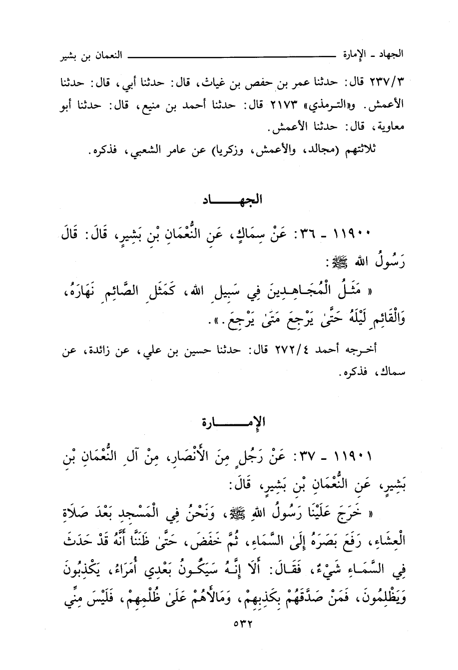 ١١٩٠٠ - عَنْ سِمَاكٍ، عَنِ النُّعْمَانِ بْنِ بَشِيرٍ، قَالَ: قَالَ رَسُولُ اللهِ صلى الله عليه وسلم: