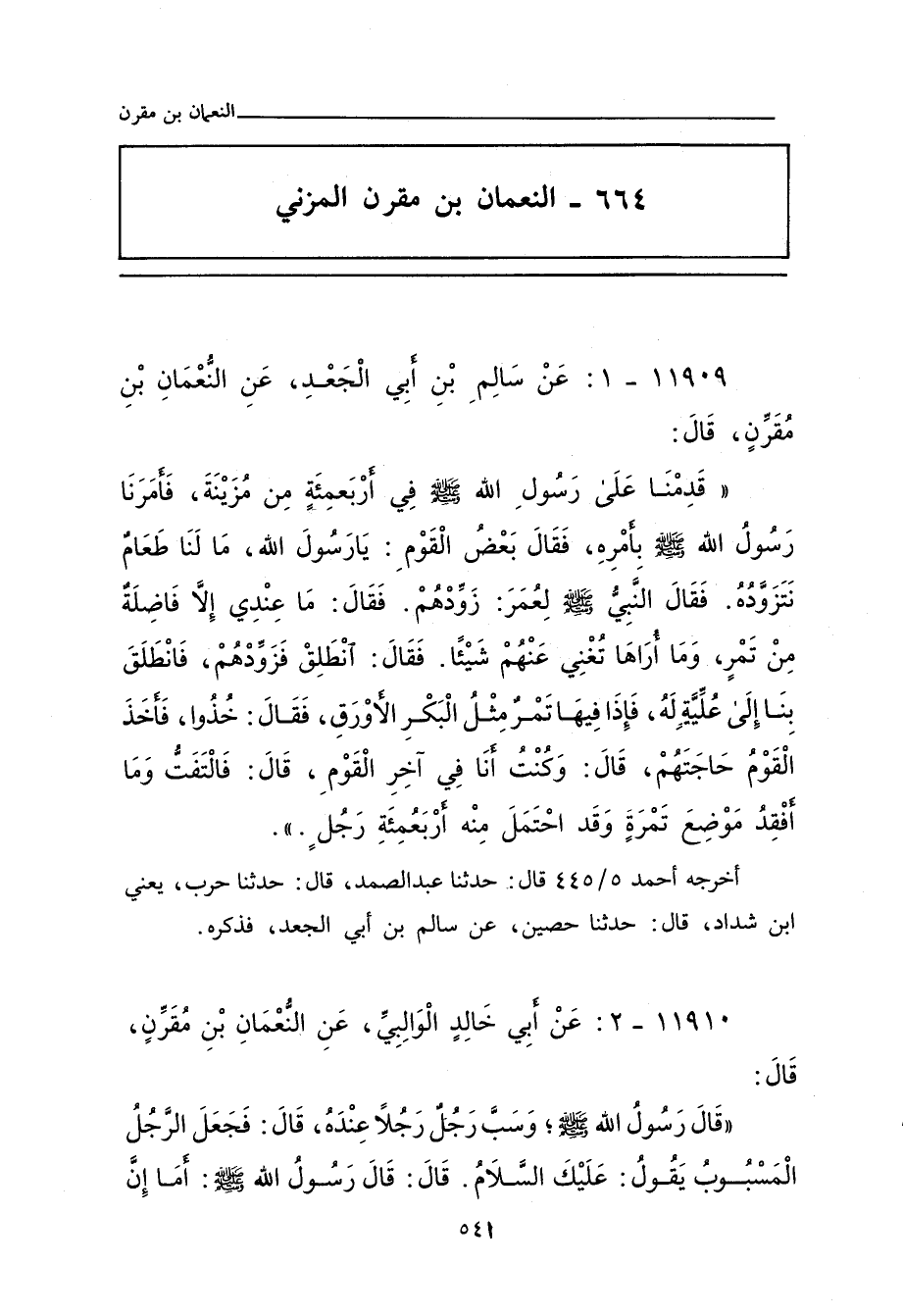 ١١٩٠٩ - عَنْ سَالم ِبْنِ أَبِي الْجَعْدِ، عَنِ النُّعْمَانِ بْنِ مُقَرِّنٍ، قَالَ: