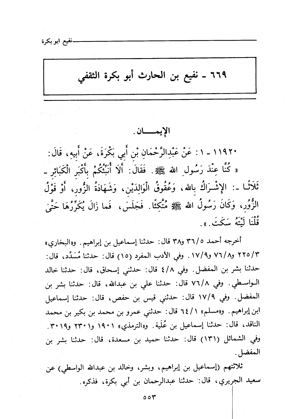 ١١٩٢٠ - عَنْ عَبْدِ الرَّحْمَانِ بْنُ أَبِي بَكْرَةَ، عَنْ أَبِيهِ، قَالَ: