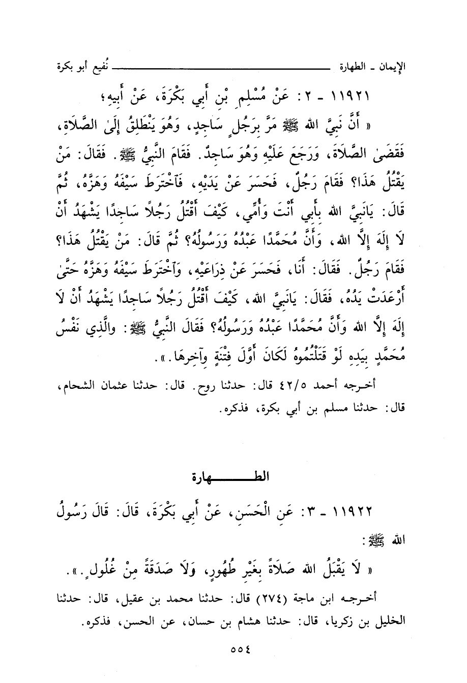 ١١٩٢١ - عَنْ مُسْلِمِ بْنِ أَبِي بَكْرَةَ، عَنْ أَبِيهِ؛