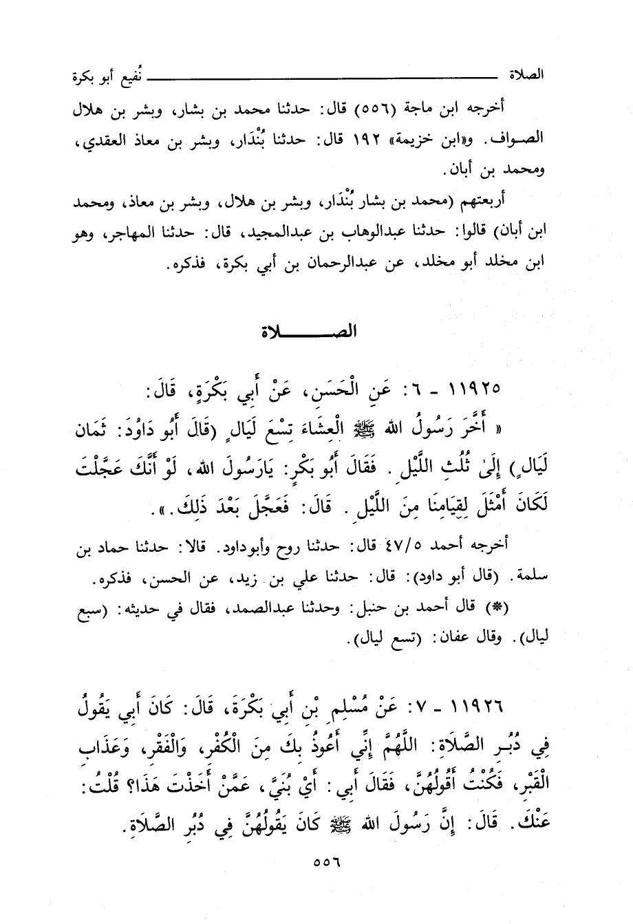 أربعتهم (محمد بن بشار، بُنْدَار، وبشر بن هلال، وبشر بن معاذ، ومحمد بن أبان،) عن عبد الوهاب بن عبد المجيد الثقفي، حدَّثنا المهاجر، وهو ابن مخلد، أبو مخلد، عن عبد الرَّحْمان بن أبي بكرة، فذكره.