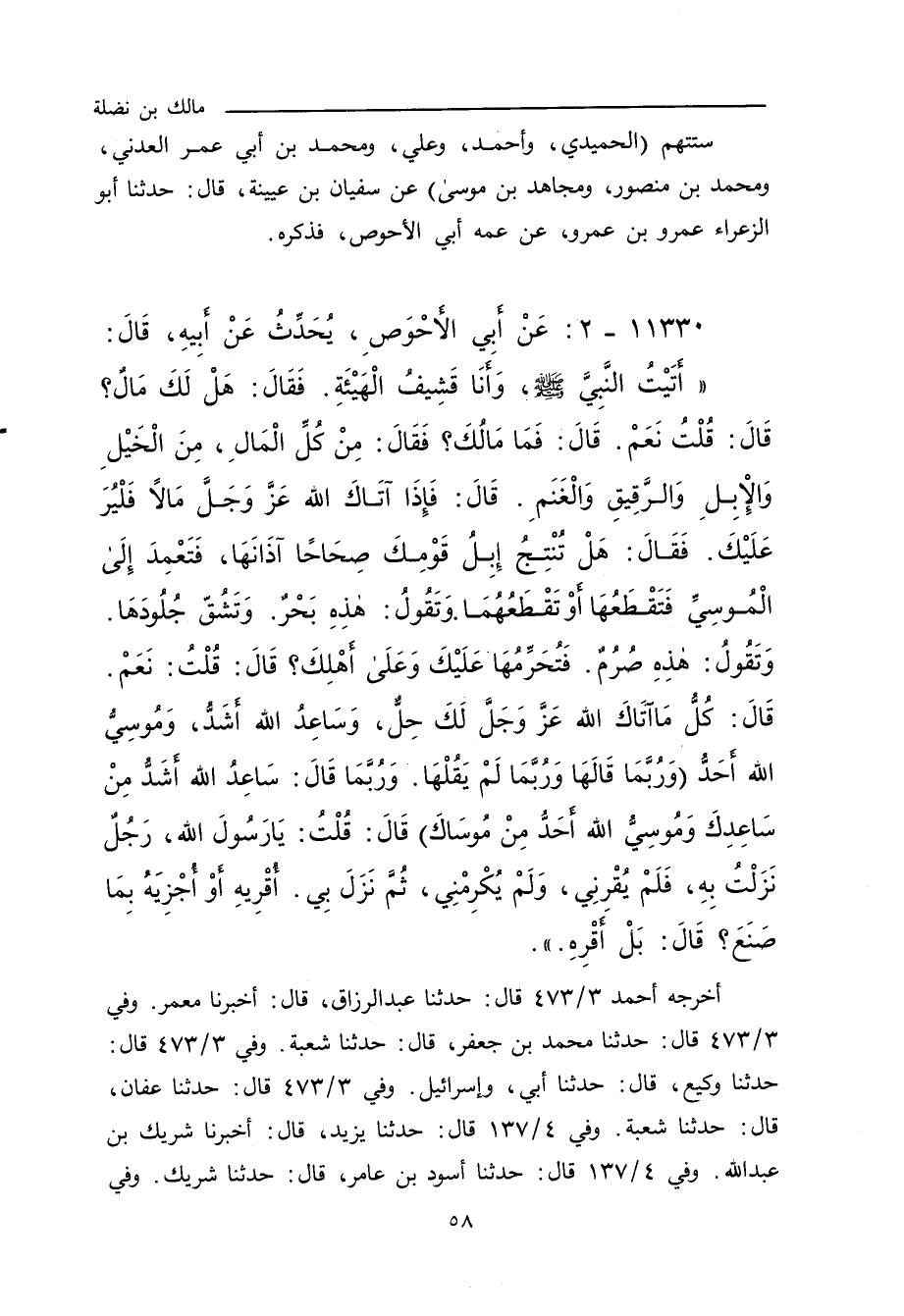 ١١٣٣٠ - عَنْ أَبِي الأَحْوَصِ، يُحَدِّثُ عَنْ أَبِيهِ، قَالَ: