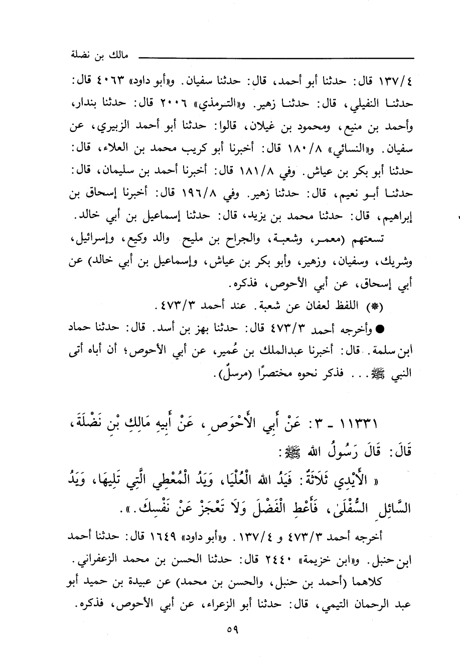 ١١٣٣١ - عَنْ أَبِي الأَحْوَصِ، عَنْ أَبِيهِ مَالِكِ بْنِ نَضْلَةَ، قَالَ: قَالَ رَسُولُ اللهِ صلى الله عليه وسلم: