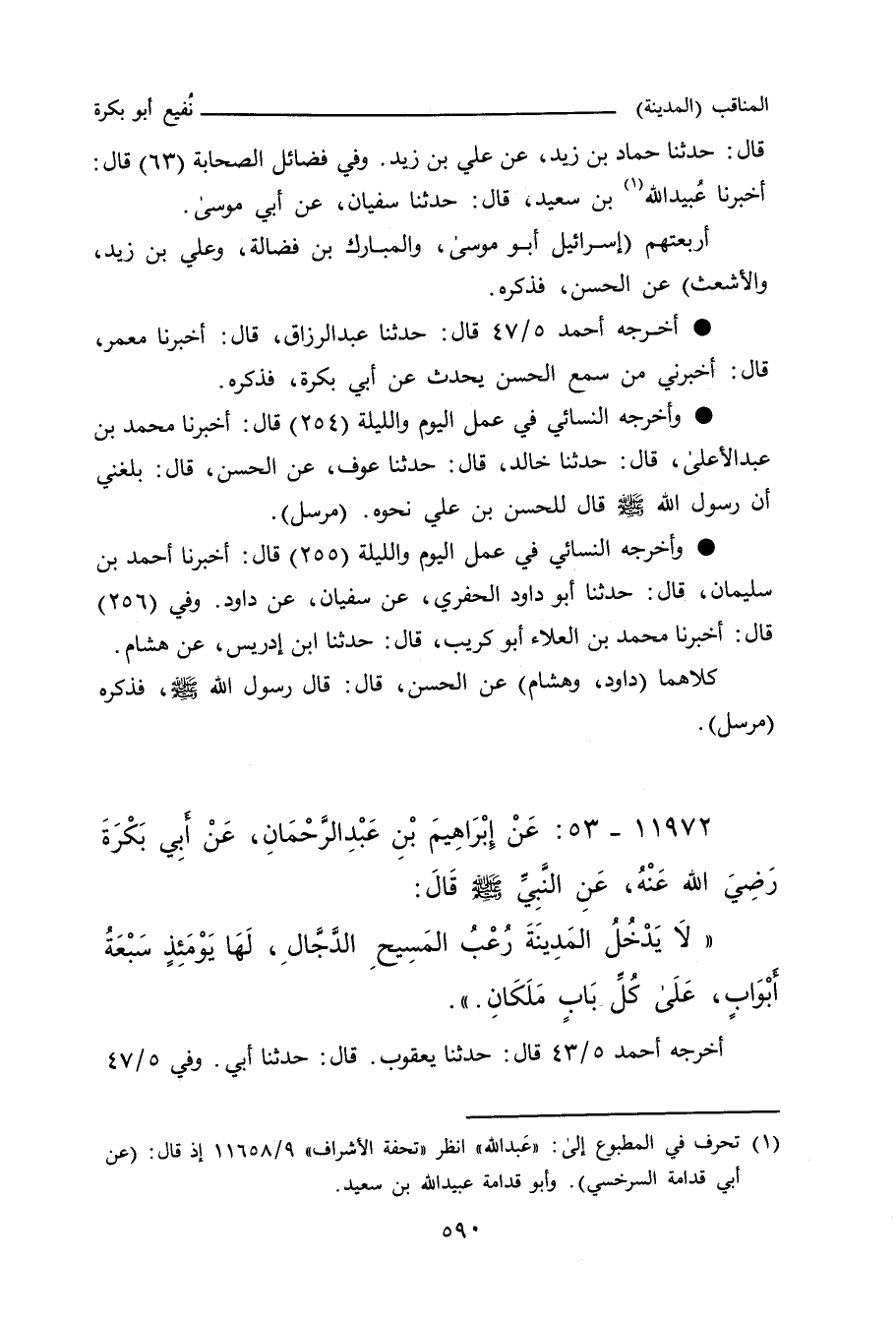 ١١٩٧٢ - عَنْ إِبْرَاهِيمَ بْنِ عَبْدِ الرَّحْمَانِ، عَنْ أَبِي بَكْرَةَ، رَضِيَ اللهُ عَنْهُ، عَنِ النَّبِيِّ صلى الله عليه وسلم، قَالَ: