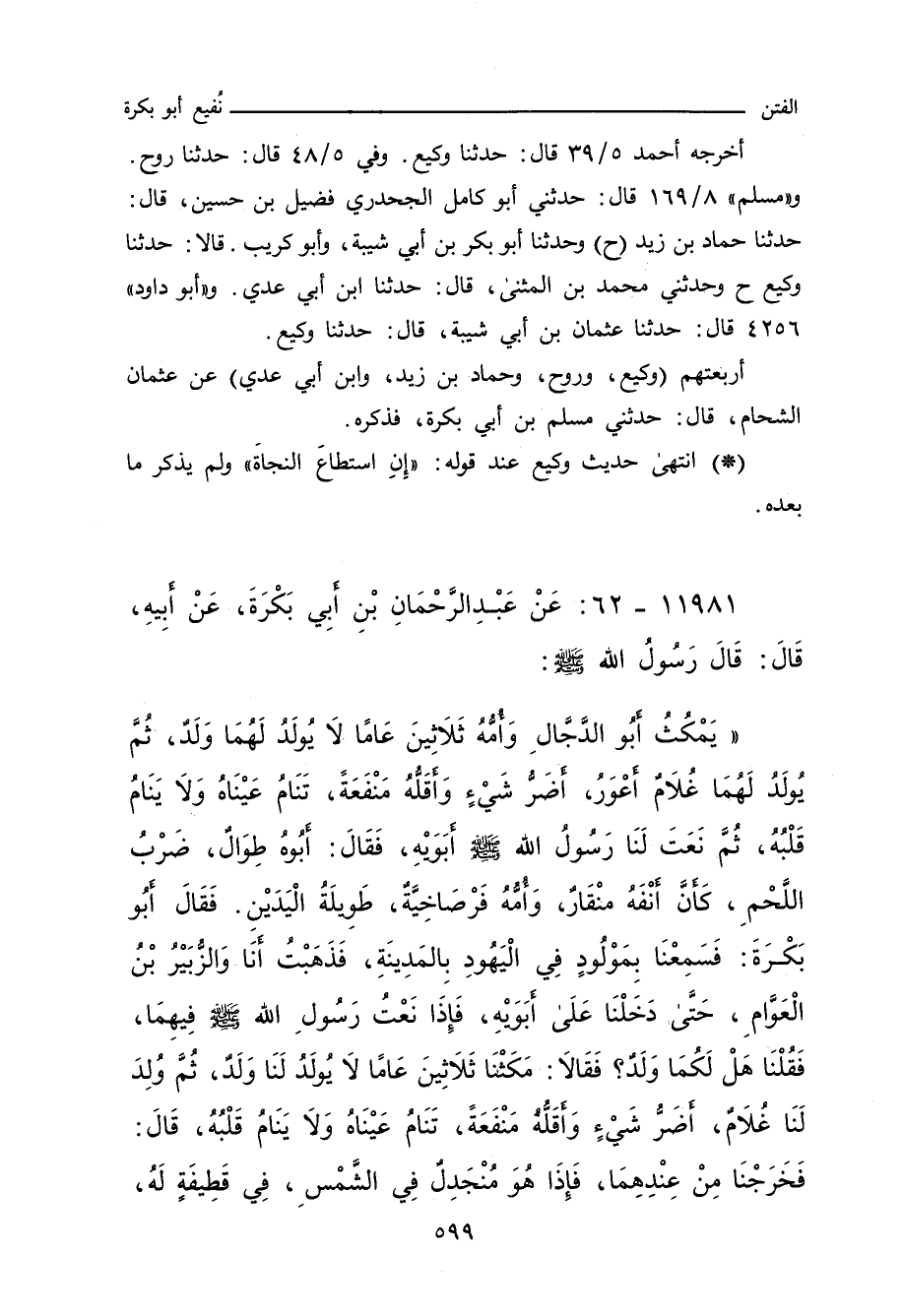أربعتهم (وكيع، وروح، وحماد بن زيد، وابن أبي عدي) عن عثمان الشحام، قال: حدثني مسلم بن أبي بكرة، فذكره.