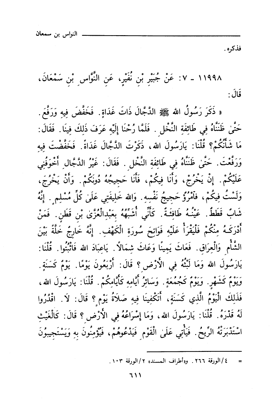 ١١٩٩٨ - عَنْ جُبَيْرِ بْنِ نُفَيْرٍ، عَنِ النَّوَّاسِ بْنِ سَِمْعَانَ، قَالَ: